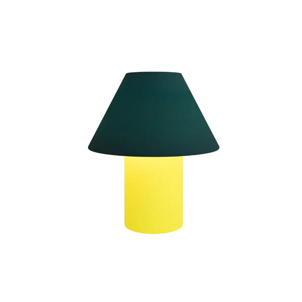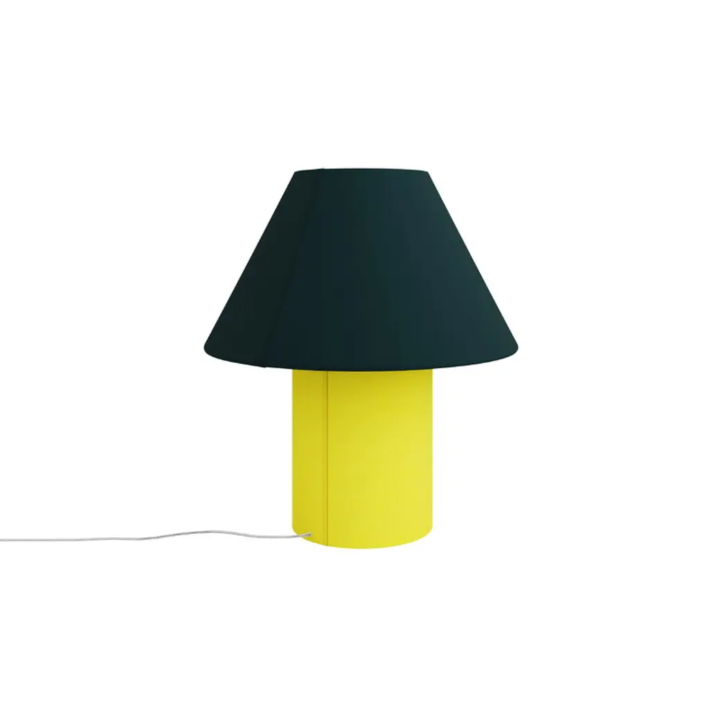 Hem's Toto table lamp charms with its cartoon-like appearance. Caricaturely exaggerated and accentuated in size, Toto almost looks like a child's drawing of a typical table lamp: a thick base supports a light, conical textile shade. The luminaire reflects designer Fabien Cappello's typically lively and energetic design not only through its form but also through its various color combinations. The versatile shades of the Toto collection offer a suitable option for every room and décor.