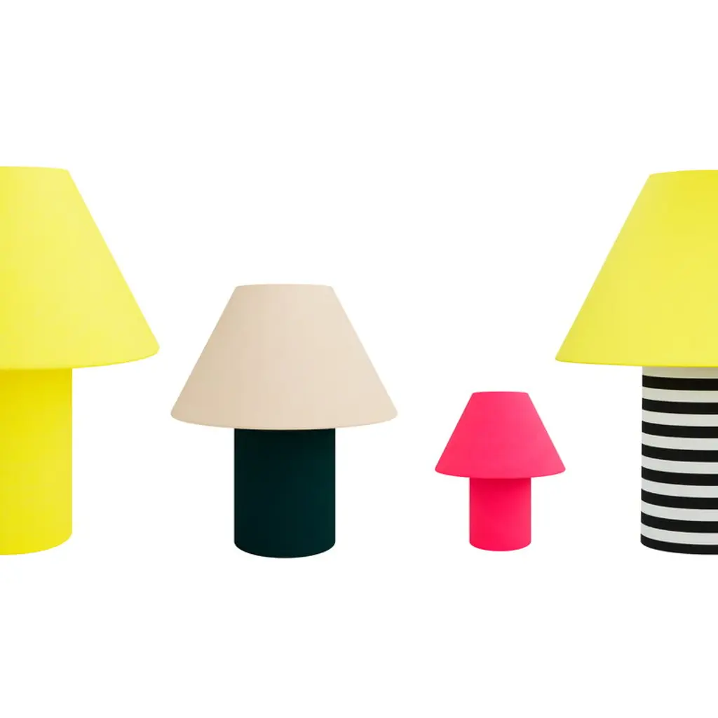 Hem's Toto table lamp charms with its cartoon-like appearance. Caricaturely exaggerated and accentuated in size, Toto almost looks like a child's drawing of a typical table lamp: a thick base supports a light, conical textile shade. The luminaire reflects designer Fabien Cappello's typically lively and energetic design not only through its form but also through its various color combinations. The versatile shades of the Toto collection offer a suitable option for every room and décor.