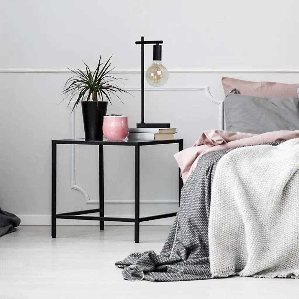 The captivating quality of industrial design radiates from the Townshed Table Lamp by Renwil. Your table lamp is supported by a durable baseplate. Set atop a desk or end table, this piece will bring a designer quality to your minimalist space. The fine steel framework and visible bulb bring a stately aesthetic to your 21st-century living space.