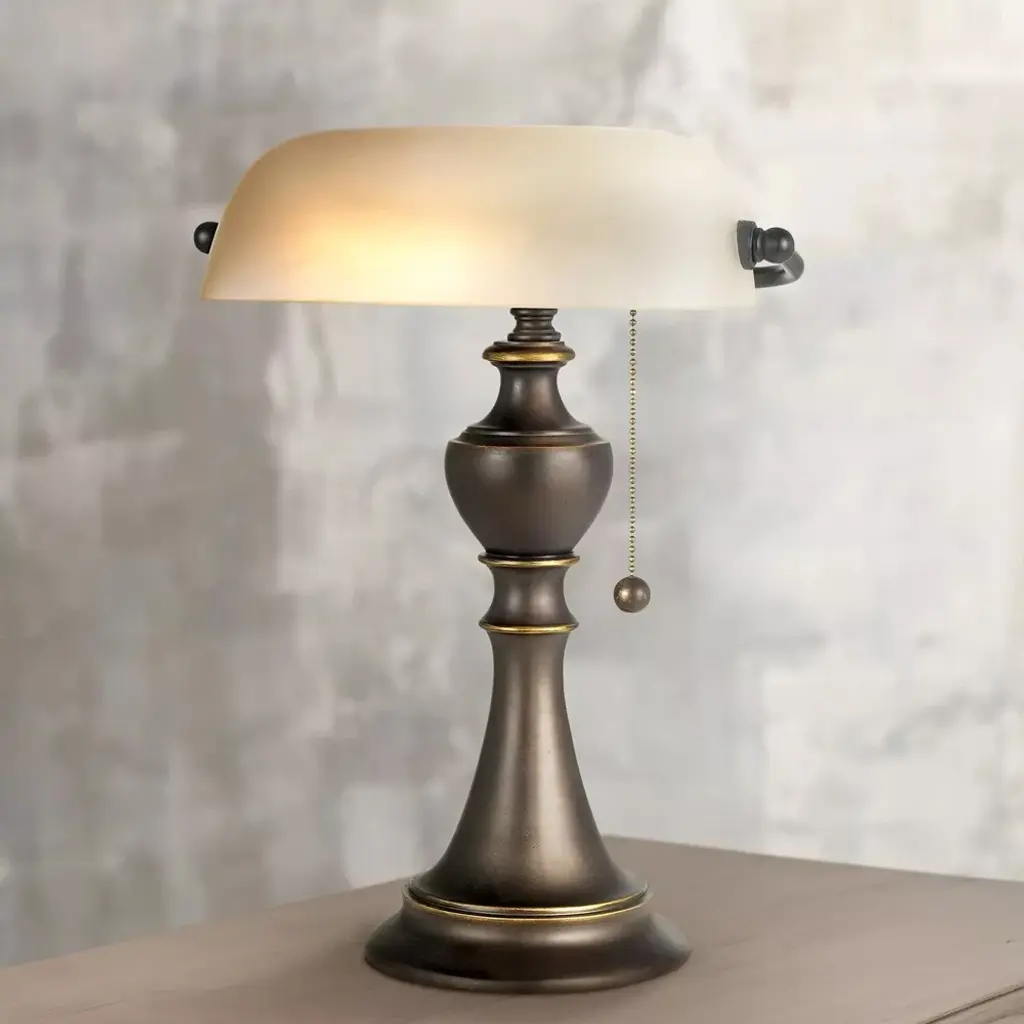 Traditional Piano Banker Table Lamp 16" High Bronze - 10.5" X 16" - 10.5" X 16" - Brown