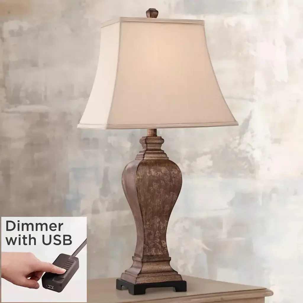 Traditional Table Lamp 29" Tall Bronze With Usb Port - 14" X 29" - 14" X 29" - Bronze