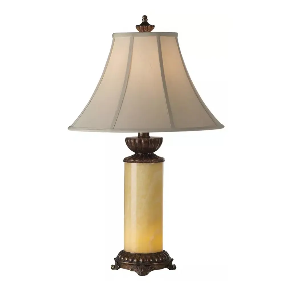 Traditional Table Lamp Bronze Onyx Column Off White - 17" X 28.5" - 17" X 28.5" - Bronze