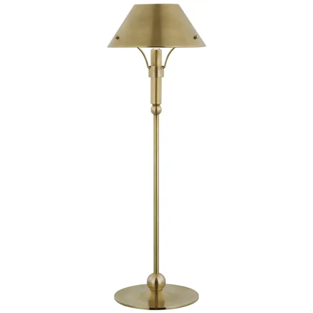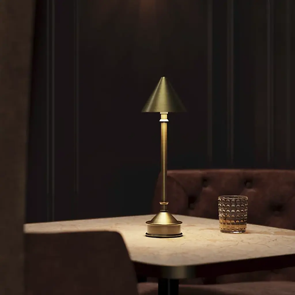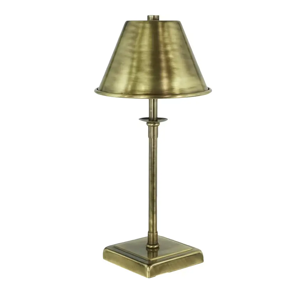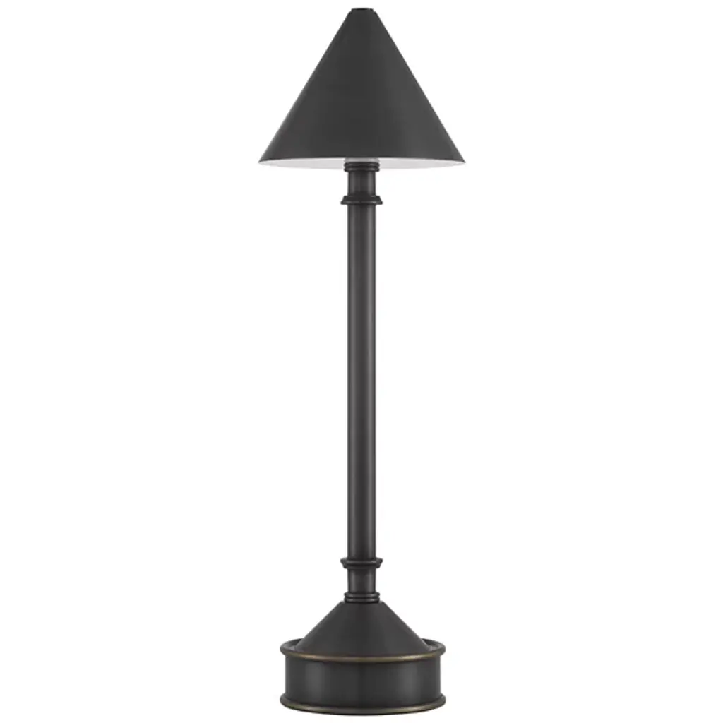 The Traipse Cordless Table Lamp from Currey & Company delivers light wherever you need it. A built-in rechargeable system powers this portable lamp, while a convenient side switch controls operation. Its polished brass flared empire shade includes a bottom diffuser for optimal light distribution. The charging base offers quick power replenishment, with additional bases available to create multiple charging stations. This cordless piece combines function with refined aesthetics, proving that convenient lighting can maintain high design standards.