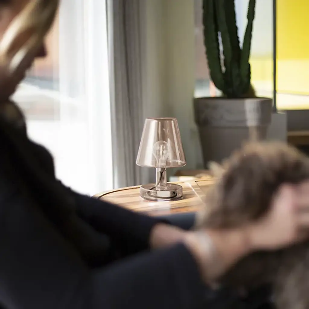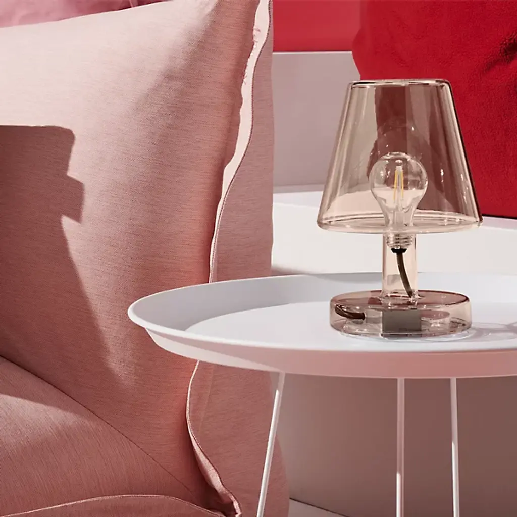 The Transloetje Table Lamp, Set of 2 from Fatboy is a charming design whose mobility lets it stand inside and outside. This polycarbonate construction draws one's attention with a compact spin on the classic table lamp silhouette. It sports a touch-sensitive switch at the base for minimal effort to achieve maximum light. Its LEDs' 3 dimming options help conserve energy. When the internal battery is fully charged, this wireless piece offers up to 8 hours of use.