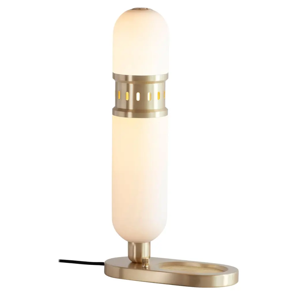 The Tratto LED Table Lamp from kdln delights with curving retro lines and a fascinating floating design that keeps its glow close at hand. Designed by Oliver Schick with an eye towards character and functionality, its cylindrical base extends a rounded arm out to the side, then up and over to support a strong, efficient LED lamp inside a flat diffuser made of mouth-blown opal glass. A touch dimmer switch emerges from the side of the base, positioned just above the cord, allowing for precise control of light intensity and creating a soothing, serene atmosphere.