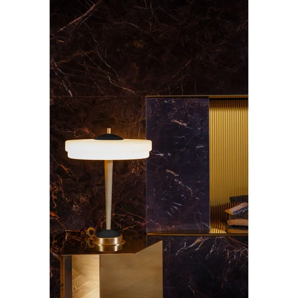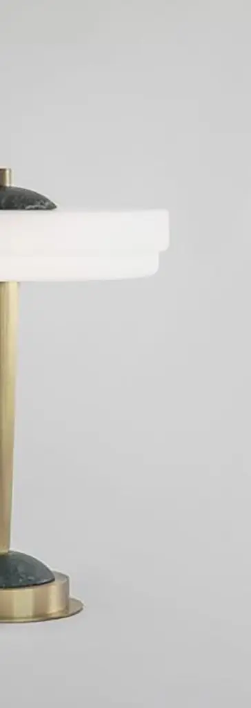 Trave table lamp green by Bert FrankDimensions: 40.5 x 30 cmMaterials: Brass, glass, marbleAvailable in green or white colors.A two-tier, soft-finish opal glass shade sheds a halo of ambient light from a delicately fluted, knurled, gently tapering brass stem. Marble detail – white Carrara or green Guatemala – in the solid brass base, repeated above the shade.When Adam Yeats and Robbie Llewellyn founded Bert Frank in 2013 it was a meeting of minds and the start of a collaborative creative partnership with engineering at the core.Both men share a love of design and deep respect for the heritage of British engineering. Both wanted to create high-end products that would Stand the test of time and fly in the face of throwaway consumerism. The partnership has resulted in award-winning lighting and accessories that fuse the integrity of the small-scale workshop with timeless aesthetics reimagined for today.The two men work closely together from concept to end product. Robbie’s imagination and occasional flights of fancy are informed by Adam’s understanding of engineering principles and fabrication techniques. Equally, Adam's designs are often the starting point for a collection. In that sense Bert Frank is a true creative collaboration. As a result, every designed is honed to perfection, every detail carefully considered.