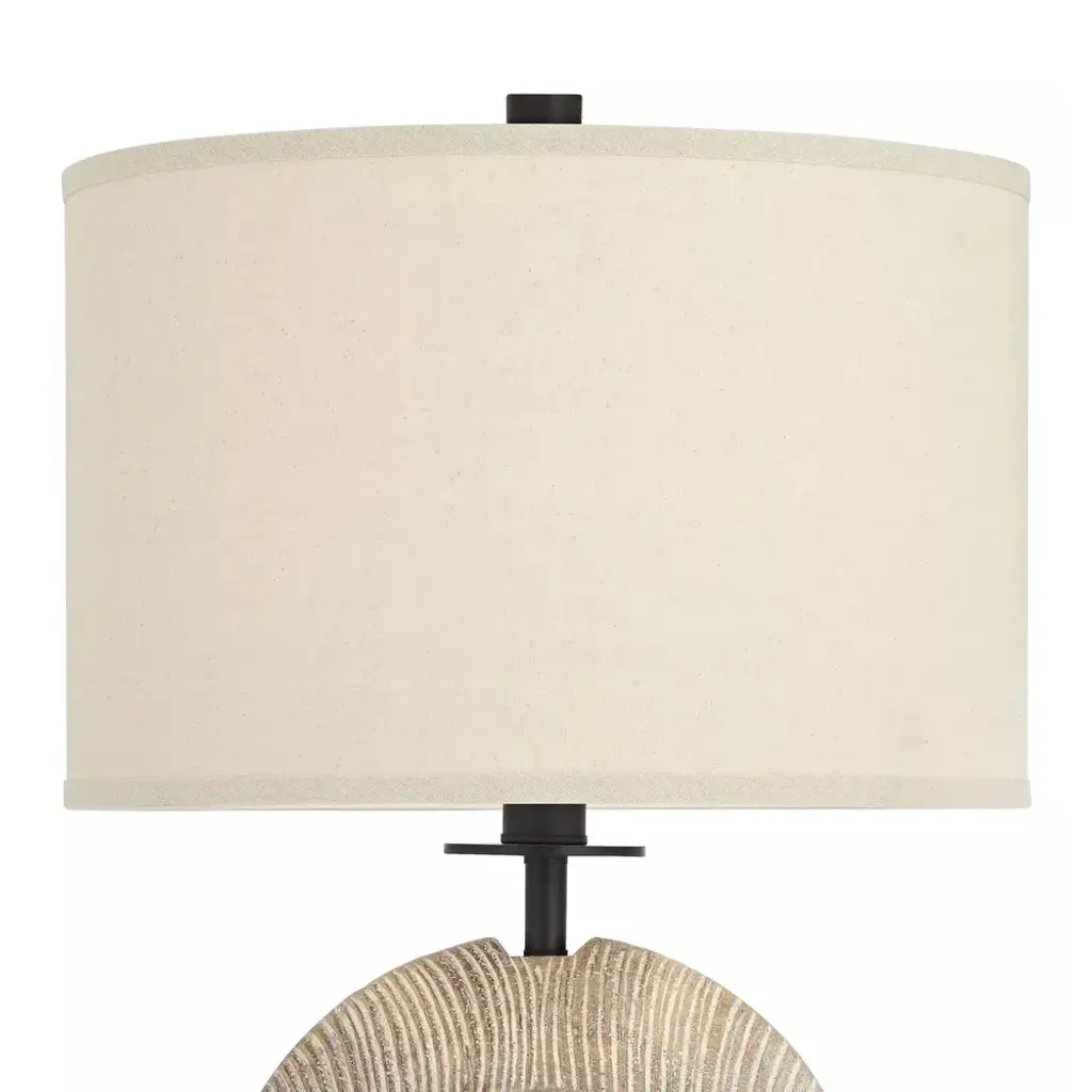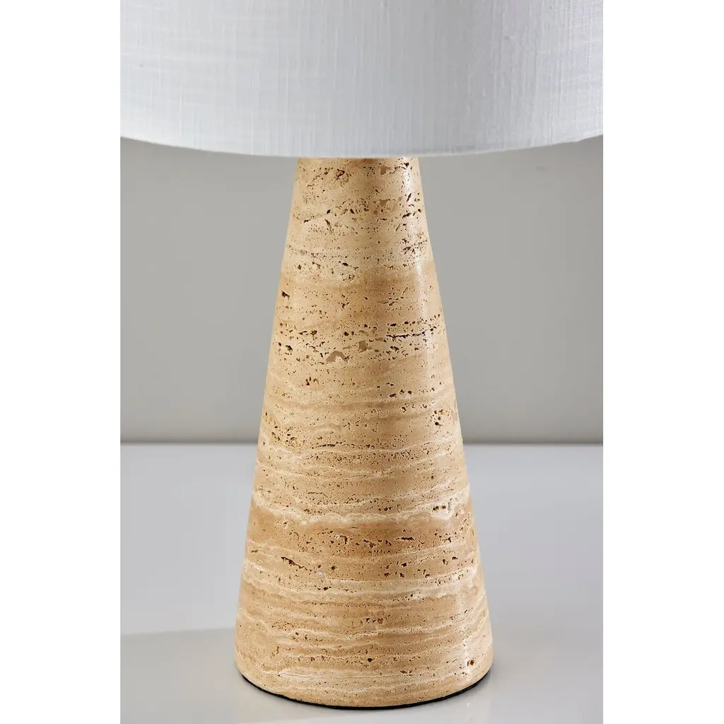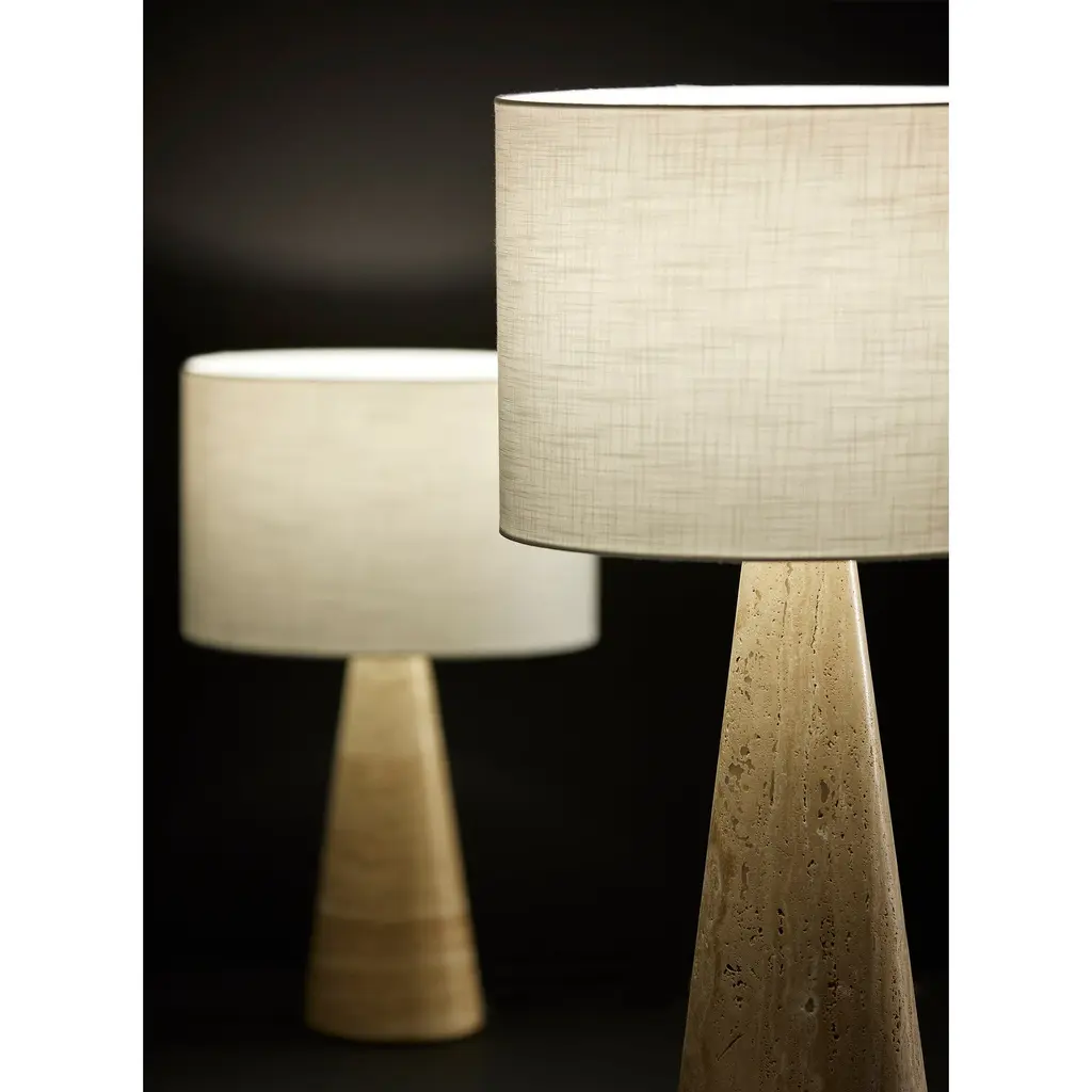 Introducing the 3963-12 Travis Table Lamp, a harmonious blend of natural beauty and contemporary design. This table lamp features a tapered cylinder base crafted from luxurious travertine stone, which brings an element of timeless elegance to your decor. It is topped with a pristine white textured fabric shade that provides a soft and inviting glow. Standing at a height of 21 inches, the Travis Table Lamp becomes a chic addition to any room. Its versatile 3-way rotary socket switch allows you to customize the lighting to suit your mood and needs, making it an ideal choice for your home. Enhance your living space with the 3963-12 Travis Table Lamp, where natural materials meet modern sensibility. Natural Beauty: The 3963-12 Travis Table Lamp features a tapered cylinder base crafted from luxurious travertine stone, adding a touch of natural beauty and sophistication to your decor. Pristine White Shade: Topped with a white textured fabric shade, this lamp diffuses soft, inviting light throughout your space, creating a cozy and warm ambiance. Customizable Lighting: Equipped with a versatile 3-way rotary socket switch, this lamp allows you to adjust the lighting to your preference, from ambient glow to functional brightness. Chic and Compact: Standing at a height of 21 inches, the Travis Table Lamp is a chic and compact lighting solution that complements various design styles and fits perfectly on tabletops, shelves, or nightstands. Timeless Elegance: The lamp's blend of natural materials and contemporary design elements results in a timeless piece that adds a touch of sophistication to any room in your home.