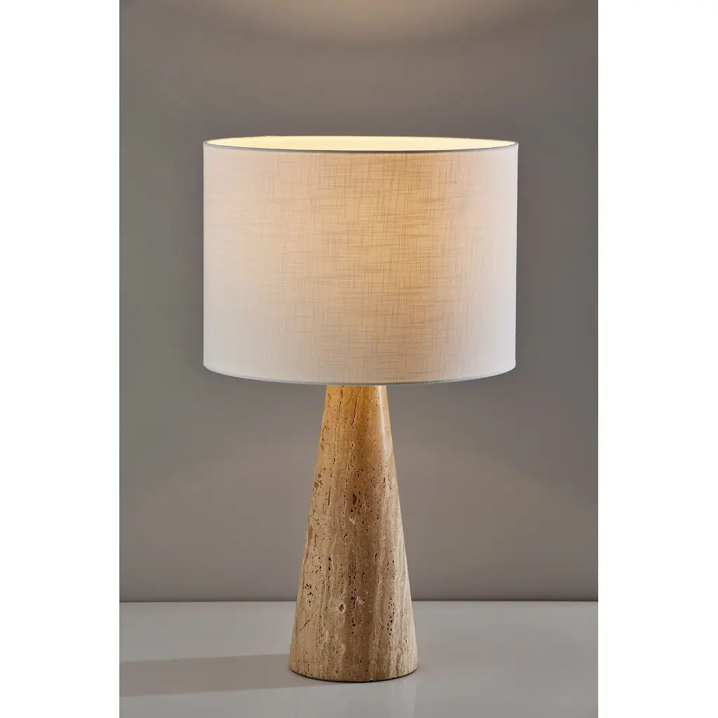 Introducing the 3964-12 Travis Tall Table Lamp, a captivating synthesis of natural allure and contemporary design. This tall table lamp features a tapered cylinder base meticulously crafted from exquisite travertine stone, which infuses your decor with an element of timeless sophistication. Crowned with an immaculate white textured fabric shade, this lamp diffuses a gentle and inviting glow that transforms any space. With a commanding height of 25.5 inches, the Travis Tall Table Lamp becomes a statement piece that adds a touch of elegance to your room. Its versatile 3-way rotary socket switch grants you full control over the lighting ambiance, making it the perfect choice for your home. Elevate your interior with the 3964-12 Travis Tall Table Lamp, where natural materials harmonize with modern aesthetics. Natural Grandeur: The 3964-12 Travis Tall Table Lamp boasts a tapered cylinder base meticulously crafted from luxurious travertine stone, bringing the grandeur of natural elements to your decor. Soft Illumination: Topped with a white textured fabric shade, this lamp casts a soft and inviting light that enhances the cozy ambiance of your space. Customizable Lighting: Featuring a versatile 3-way rotary socket switch, this lamp allows you to tailor the lighting to your liking, from ambient glow to functional brightness. Statement Height: Standing tall at 25.5 inches, the Travis Tall Table Lamp becomes a commanding presence that enriches the style and atmosphere of any room, from living areas to bedside tables. Timeless Elegance: The lamp's fusion of natural beauty and contemporary design creates a timeless piece that adds a touch of sophistication and refinement to your interior.