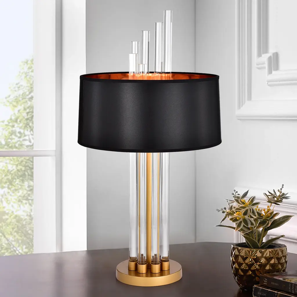 Description:Launching this gleaming in low light condition with bright light could help you to work easier with this table lamp. cluster clear glass bars used to be the stand attaching to the base and could be an eye-catching lamp from your room. Matte gold finished with line switch power source and has one (1) light bulb that falls under modern and contemporary style. Features:Dimensions: