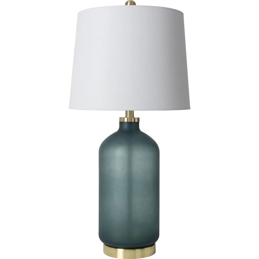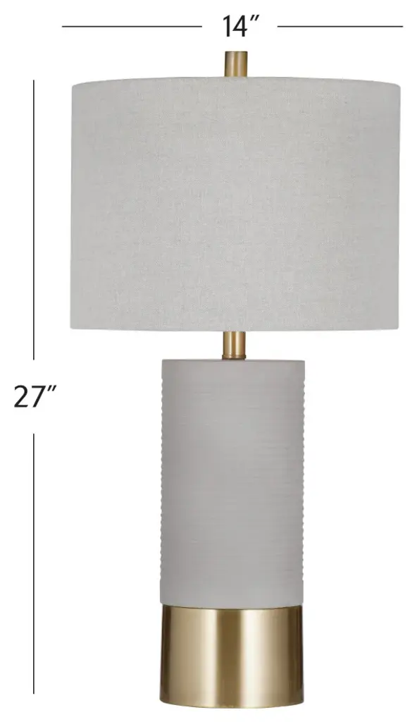 The Tremont Table Lamp from Wildwood adds a mix of Transitional intricacy and Mid-Century Modern refinement to its surroundings. A rounded ceramic body set atop a circular brass-finished base extends a cylinder upward, supporting a single lamp inside a linen drum shade. The translucent shade transforms bright light into an even warmth while a cylinder-shaped finial holds the shade in place, appearing to continue through the shade uninterrupted for a bit of playful character.