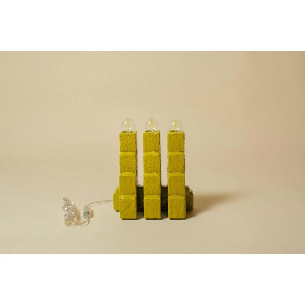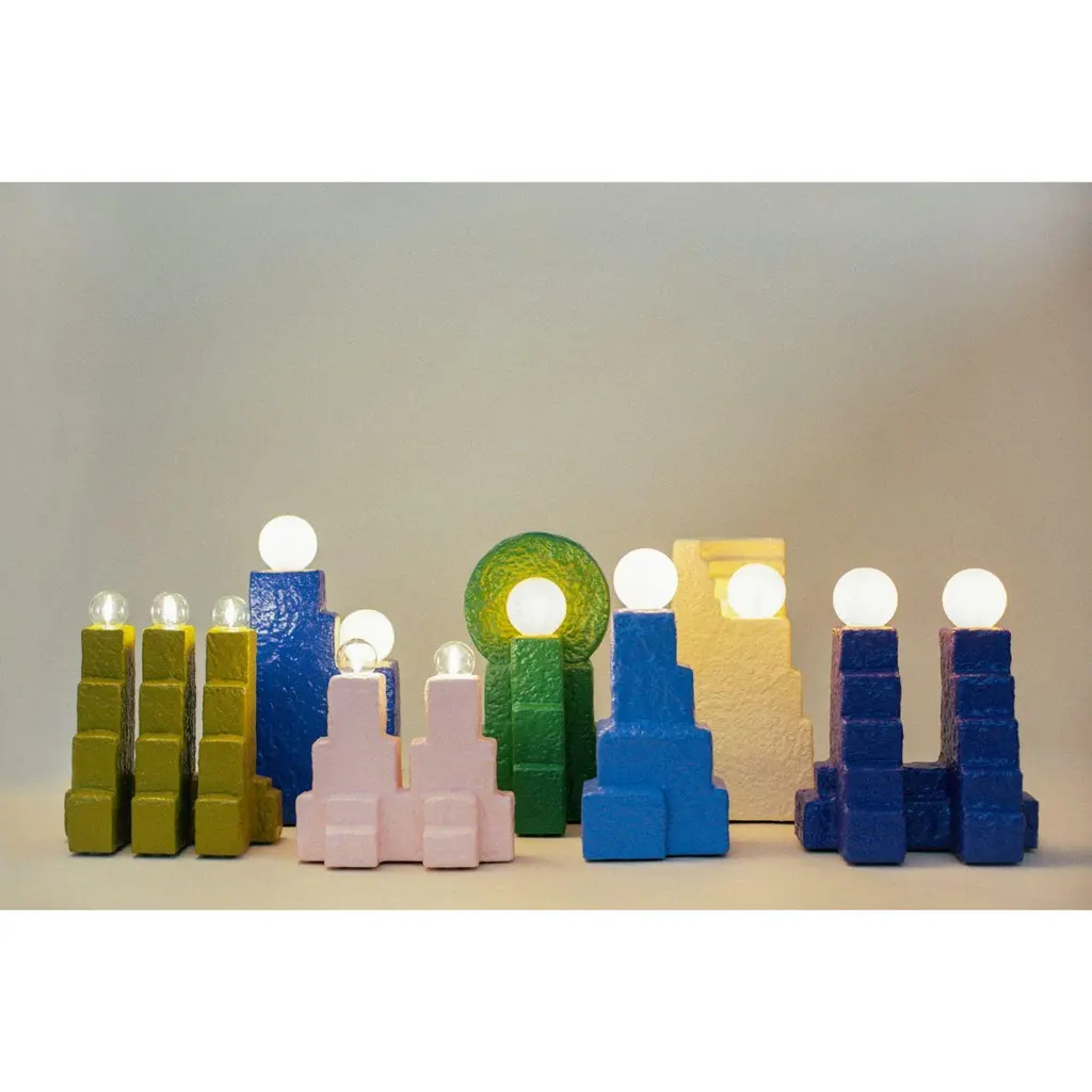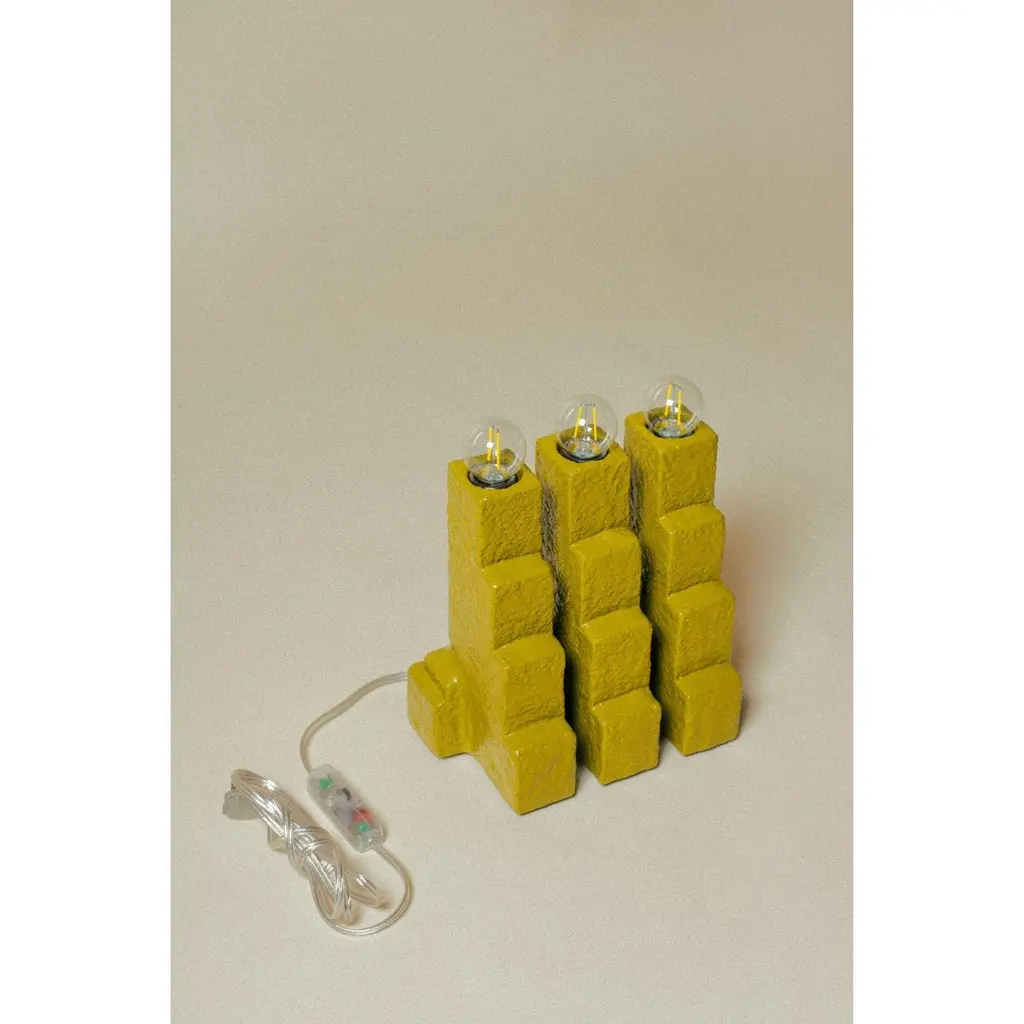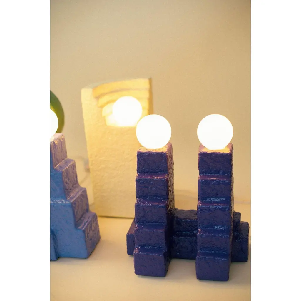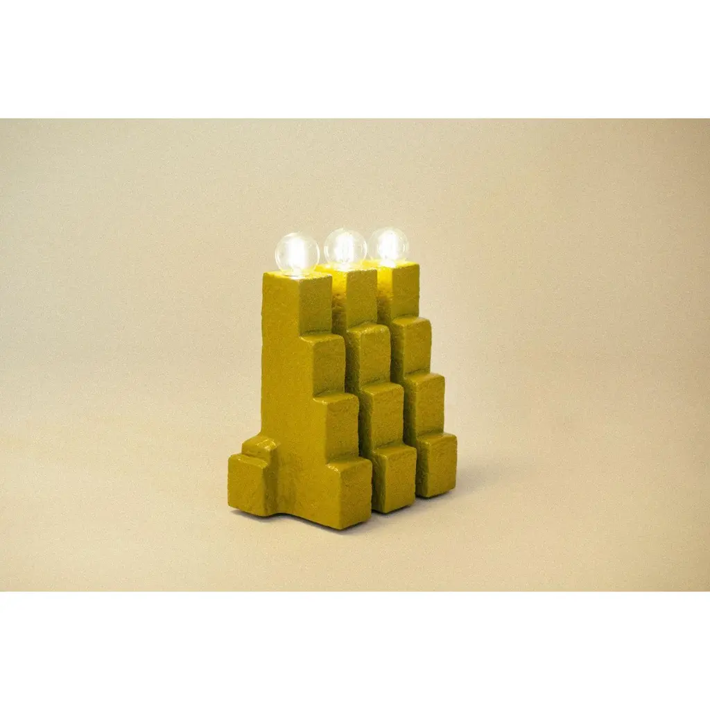 Tres Escaleras table lamp by Algo StudioDesigned by Diego GarzaDimensions: D 26 x W 14 x H 30 cmMaterials: Plywood, MDF, PVA Glue, Sand, Steel.Also available in different colours. Light LED bulb 2 ” dimmable of 2700KAlgo Studio, based in Monterrey, Mexico, was founded in 2019 by Diego Garza, architect with a MFA in furniture design by RISD in 2015.Our goal is to be a constant creation laboratory on product, furniture and lighting design. We have our own workshop where we produce some of our pieces. Our creative method is based on working firsthand with materials and techniques in order to create new results.We seek to create elementary objects with a soul. Objects with a warm, grounded vibe, expressing something interesting to the senses.With the intention to keep things fresh and be able to constantly regenerate our proposals most of our lots are all small and limited.All our lamps can be wired according to each country. If sold to the USA it will be wired for the USA for instance.