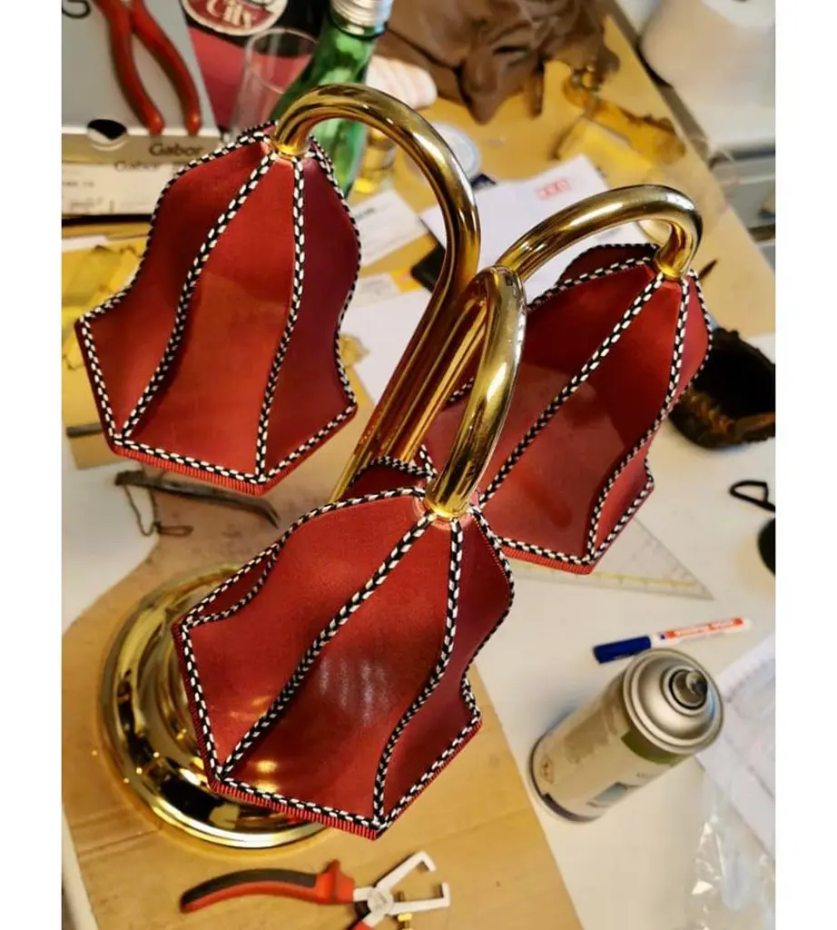 A very charming table lamp with fabric-shades in any colour. Base diameter 20cm (7.9").Originally manufactured at the Wiener Werksta¨tte Atelier, now custom-made production at the Woka Lamps Workshop in ViennaMost components according to the UL regulations, with an additional charge we will UL-list and label our fixtures.