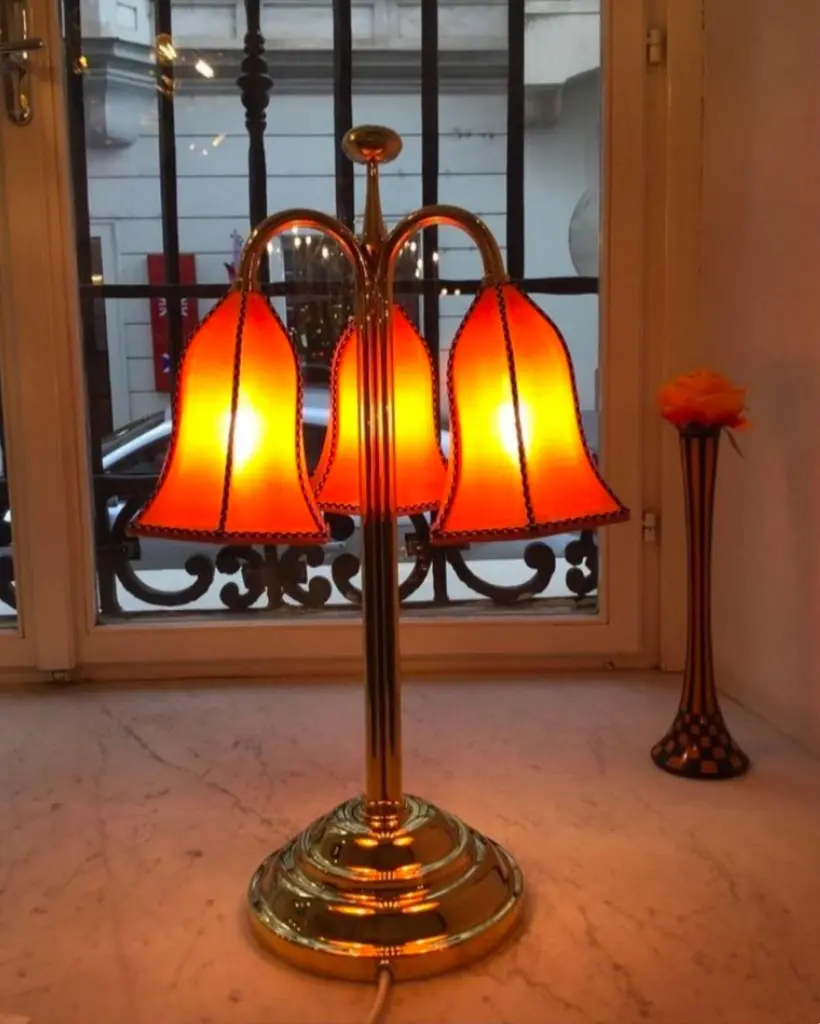 "Triflower" Josef Hoffmann&wiener Werkstaette Silk&brass Table Lamp, Re-Edition