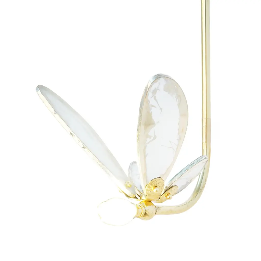 "Trilly" Hanging Lamp Clear Silvered Crystal Wings, Brass Body