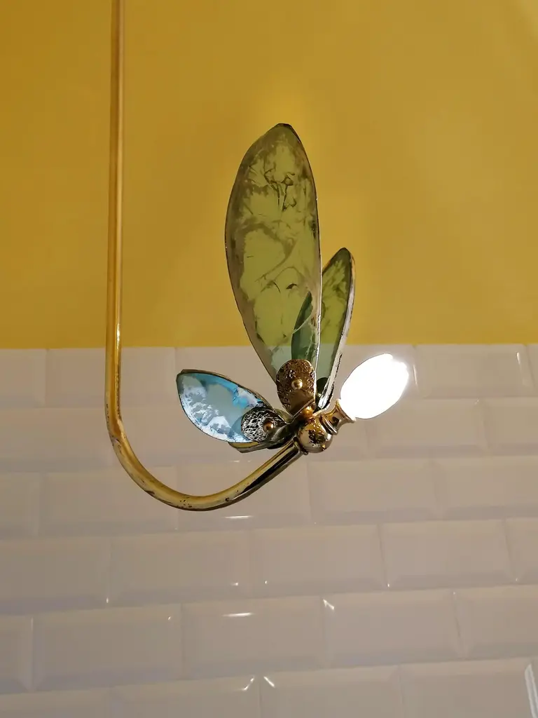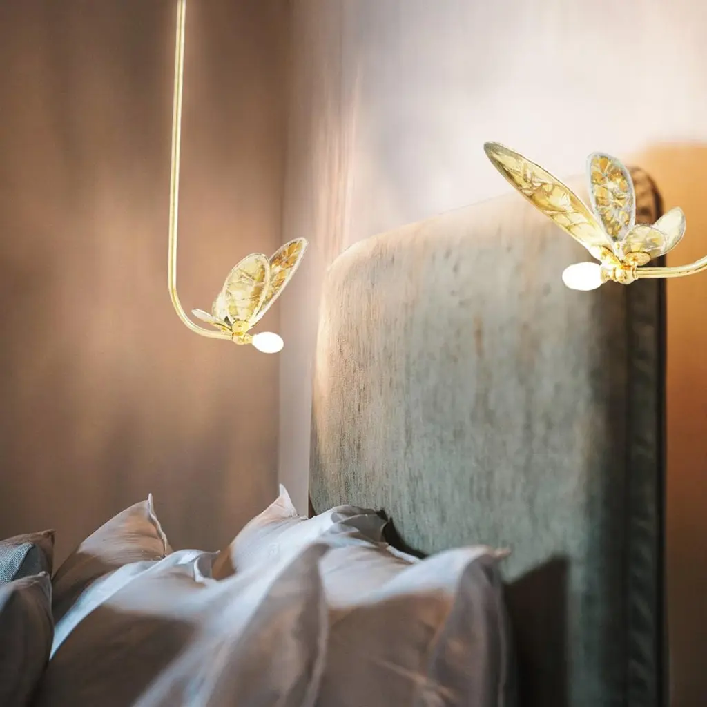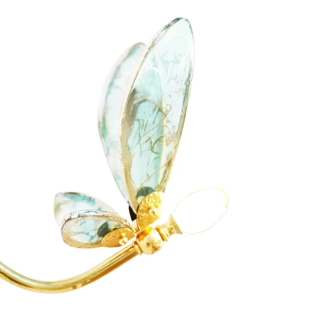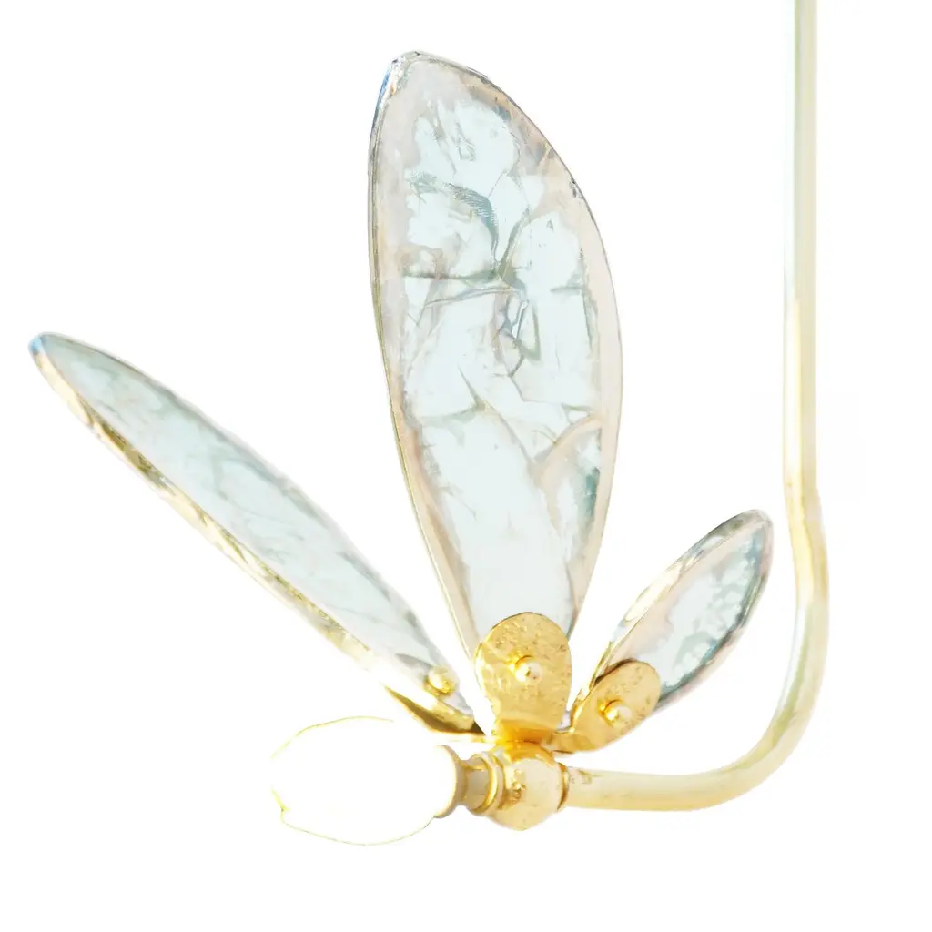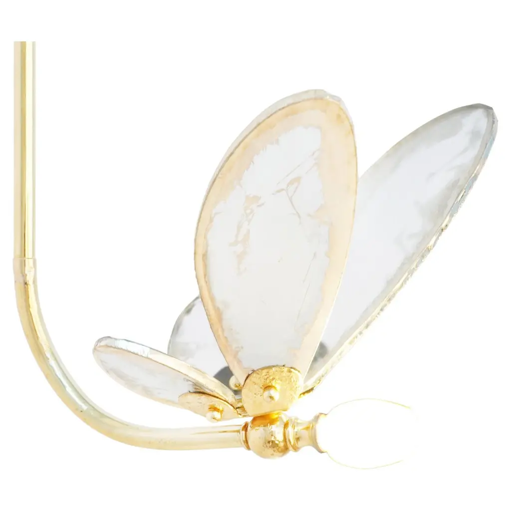 TRILLY The fairy fragrance of freedomThe traditional know-how of our workshop dances to the rhythm of our creative days. Discover the story of the Maison Sabrina Landini, punctuated by originality, crafted by Italian savoir-faire and inspired by timeless shapes and colors. Here beats the heart of a living heritage, that of craftsman-ship.Small and ethereal, Trilly, the little sister of our Butterfly, brings fresh allure to home décor.Capture your dream and let your imagination soar with Trilly, symbol of joy, optimism and wonder, inspired by the sense of freedom. Trilly, with multiply directions, seems to take flight with breathtaking colored wings. To highlight traditional handworks, this magnificent creation features hand-cut glass, sprinkled across silvered tones spanning over its surface irregularly with the polished brass body. An artful blend of the iconic collection Sabrina Landini, well known for the innovative creativity. Something brilliant awaits, experience Trilly! Available in a wide range of silvered glass colors :crystal silvering, jade, rose, sun, black, smoky grey, aquamarine, blue CE certified and Electrified : US, EU, UK , 1x G4 lamp holder, dimmable