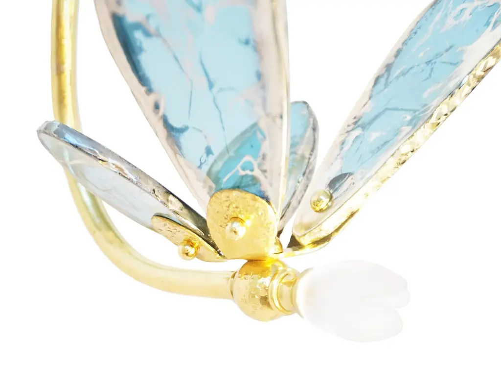 TRILLY The fairy fragrance of freedomThe traditional know-how of our workshop dances to the rhythm of our creative days. Discover the story of the Maison Sabrina Landini, punctuated by originality, crafted by Italian savoir-faire and inspired by timeless shapes and colors. Here beats the heart of a living heritage, that of craftsman-ship.Small and ethereal, Trilly, the little sister of our Butterfly, brings fresh allure to home décor.Capture your dream and let your imagination soar with Trilly, symbol of joy, optimism and wonder, inspired by the sense of freedom. Trilly, with multiply directions, seems to take flight with breathtaking colored wings. To highlight traditional handworks, this magnificent creation features hand-cut glass, sprinkled across silvered tones spanning over its surface irregularly with the polished brass body. An artful blend of the iconic collection Sabrina Landini, well known for the innovative creativity. Something brilliant awaits, experience Trilly! Available in a wide range of silvered glass colors :crystal silvering, jade, rose, sun, black, smoky grey, aquamarine, blue CE certified and Electrified : US, EU, UK , 1x G4 lamp holder, dimmable