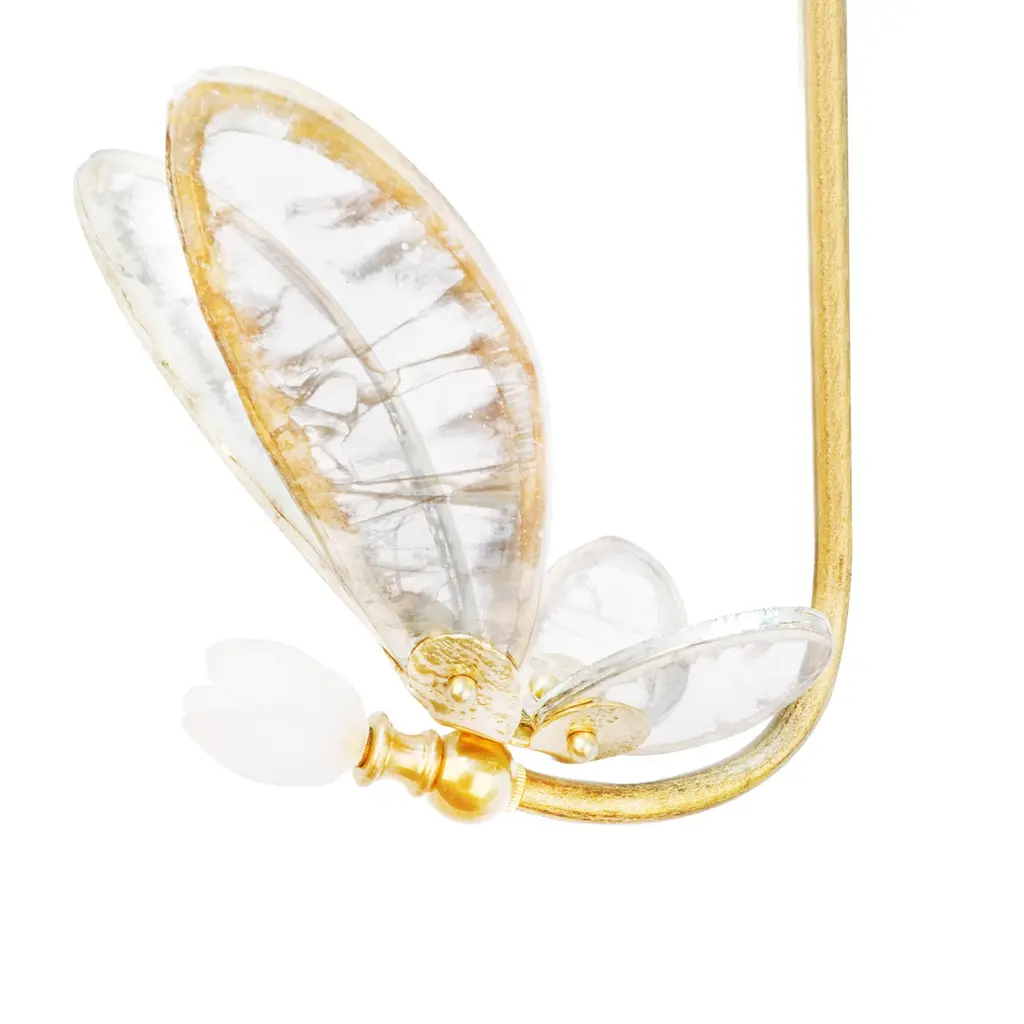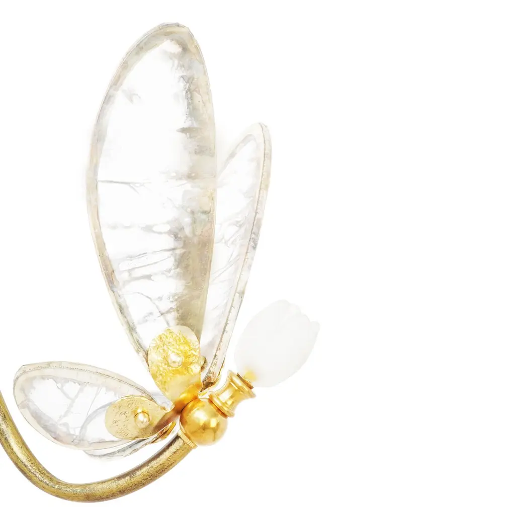 TRILLY The fairy fragrance of freedomThe traditional know-how of our workshop dances to the rhythm of our creative days. Discover the story of the Maison Sabrina Landini, punctuated by originality, crafted by Italian savoir-faire and inspired by timeless shapes and colors. Here beats the heart of a living heritage, that of craftsman-ship.Small and ethereal, Trilly, the little sister of our Butterfly, brings fresh allure to home décor.Capture your dream and let your imagination soar with Trilly, symbol of joy, optimism and wonder, inspired by the sense of freedom. Trilly, with multiply directions, seems to take flight with breathtaking colored wings. To highlight traditional handworks, this magnificent creation features hand-cut glass, sprinkled across silvered tones spanning over its surface irregularly with the polished brass body. An artful blend of the iconic collection Sabrina Landini, well known for the innovative creativity. Something brilliant awaits, experience Trilly! Available in a wide range of silvered glass colors :crystal silvering, jade, rose, sun, black, smoky grey, aquamarine, blue CE certified and Electrified : US, EU, UK , 1x G4 lamp holder, dimmable