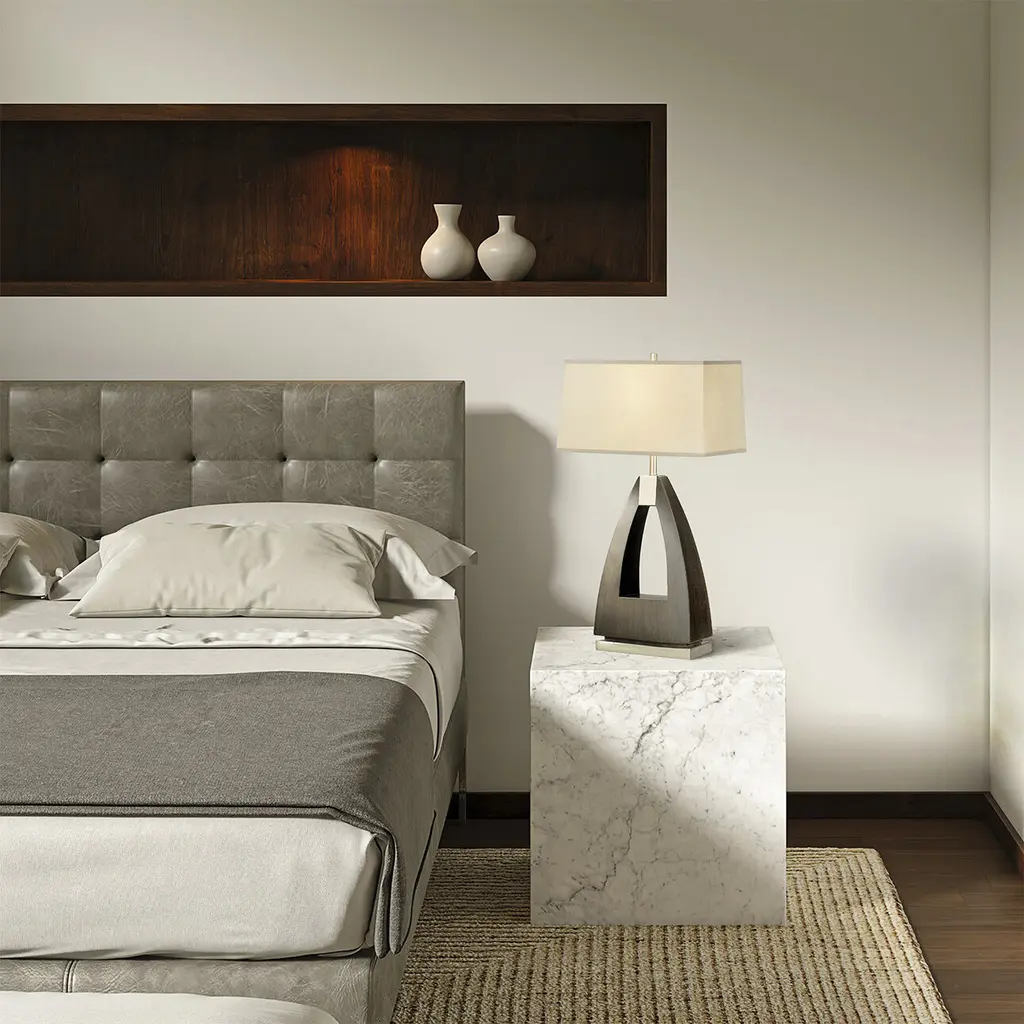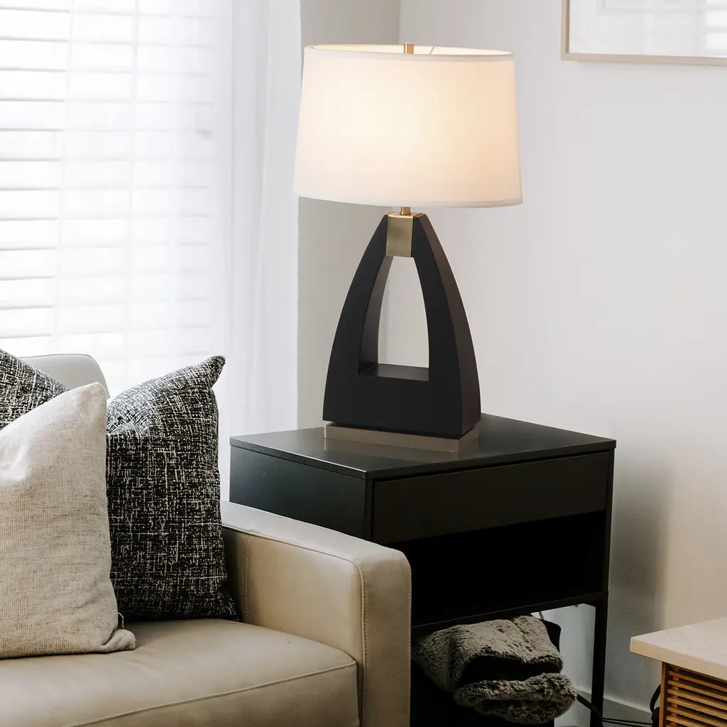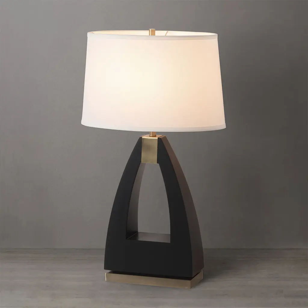 Elevate the style of your living room or bedroom with the Trina Table Lamp by NOVA of California, a sophisticated modern piece that seamlessly blends iconic mid-century design with contemporary allure. Crafted with meticulous attention to detail, this table lamp features a striking ebony wood and weathered brass finish, complemented by a refined white linen shade. Designed by the renowned product designer Jim McDonald, the Trina Table Lamp adds a touch of timeless style to your space while providing a tasteful and functional lighting solution. Discover a variety of high-quality lighting designs within the NOVA of California collection. Explore the full range to find the perfect piece for your home, and elevate your space with the timeless allure of Trina.