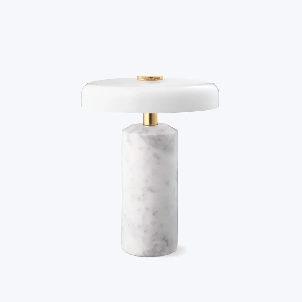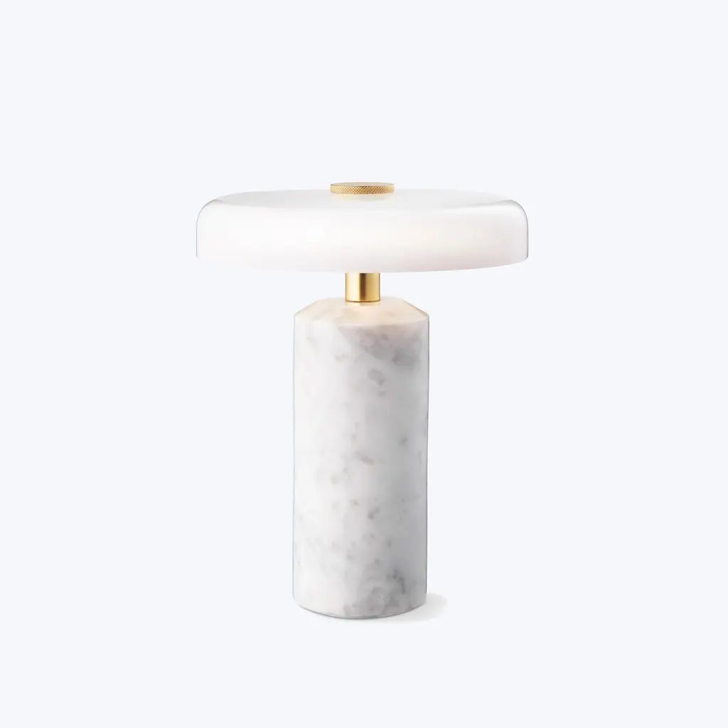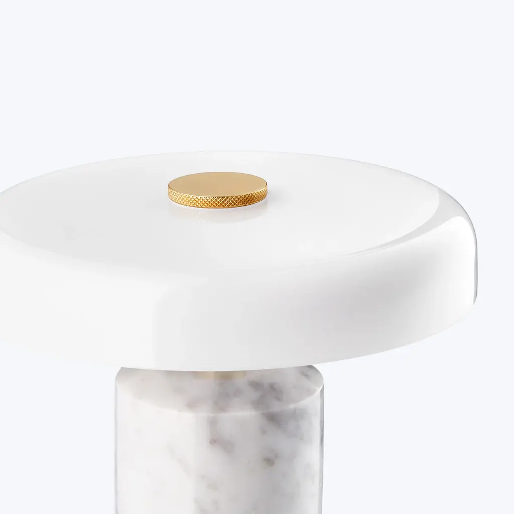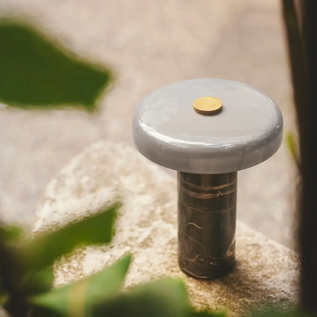 Clean lines and a simple design crafted from beautiful materials make this Trip Portable Lamp a standout in our lighting collection. Every detail in this portable, rechargeable LED lamp has been masterfully articulated from its sculptural design from polished marble to the mouth-blown glass. This portable LED lamp features a touch dimmer on the top, so you can adjust the brightness to three different levels. A full charge is approximately 9 hours courtesy of its built-in battery and is supplied by a wireless charger and USB-a/USB-c cable. Suitable for indoor and outdoor usage, but we suggest bringing it inside during the rain or overnight. Please note this marble portable lamp will have a unique color and texture due to its natural marble stone base.
