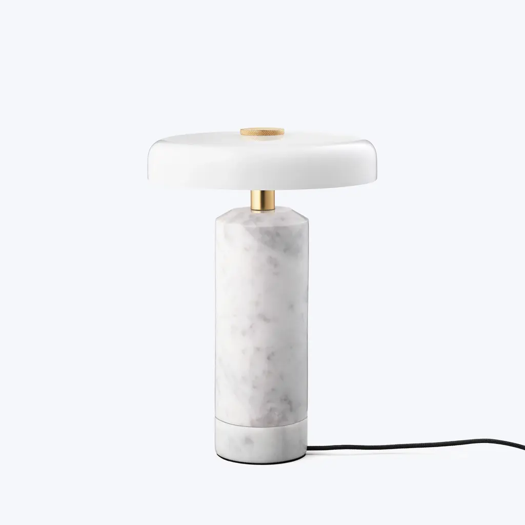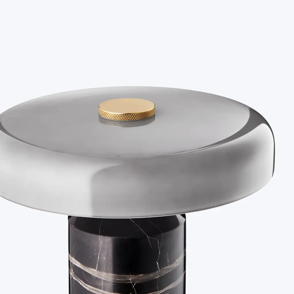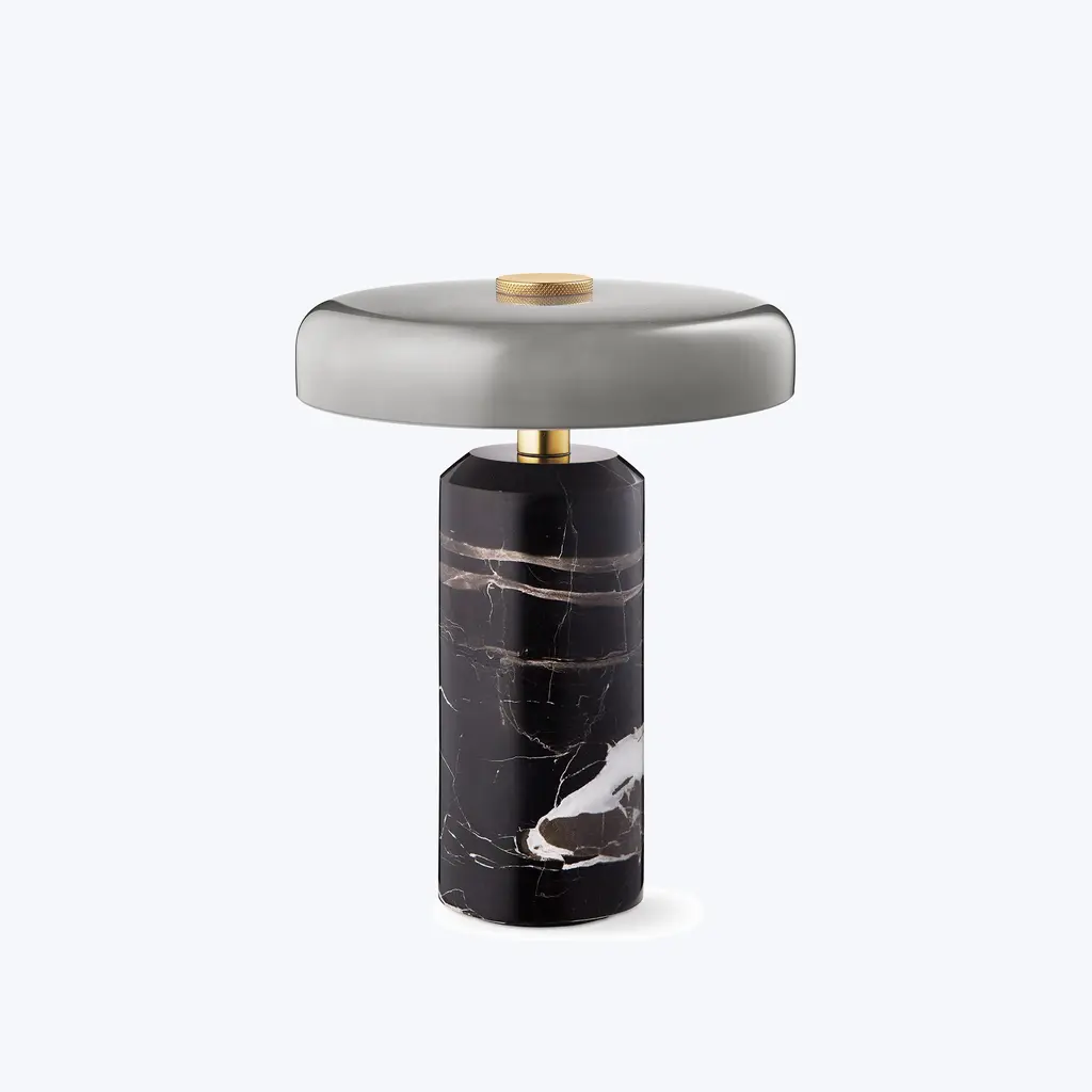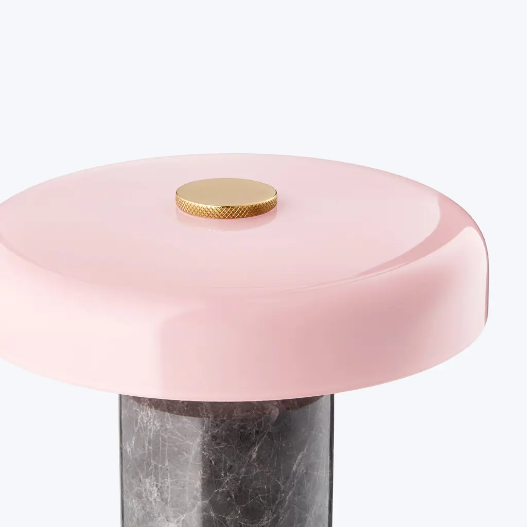 Clean lines and a simple design crafted from beautiful materials make this Trip Portable Lamp a standout in our lighting collection. Every detail in this portable, rechargeable LED lamp has been masterfully articulated from its sculptural design from polished marble to the mouth-blown glass. This portable LED lamp features a touch dimmer on the top, so you can adjust the brightness to three different levels. A full charge is approximately 9 hours courtesy of its built-in battery and is supplied by a wireless charger and USB-a/USB-c cable. Suitable for indoor and outdoor usage, but we suggest bringing it inside during the rain or overnight. Please note this marble portable lamp will have a unique color and texture due to its natural marble stone base.