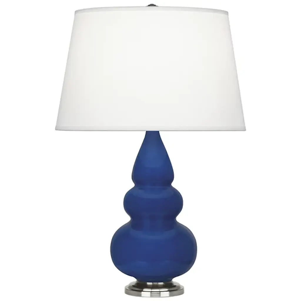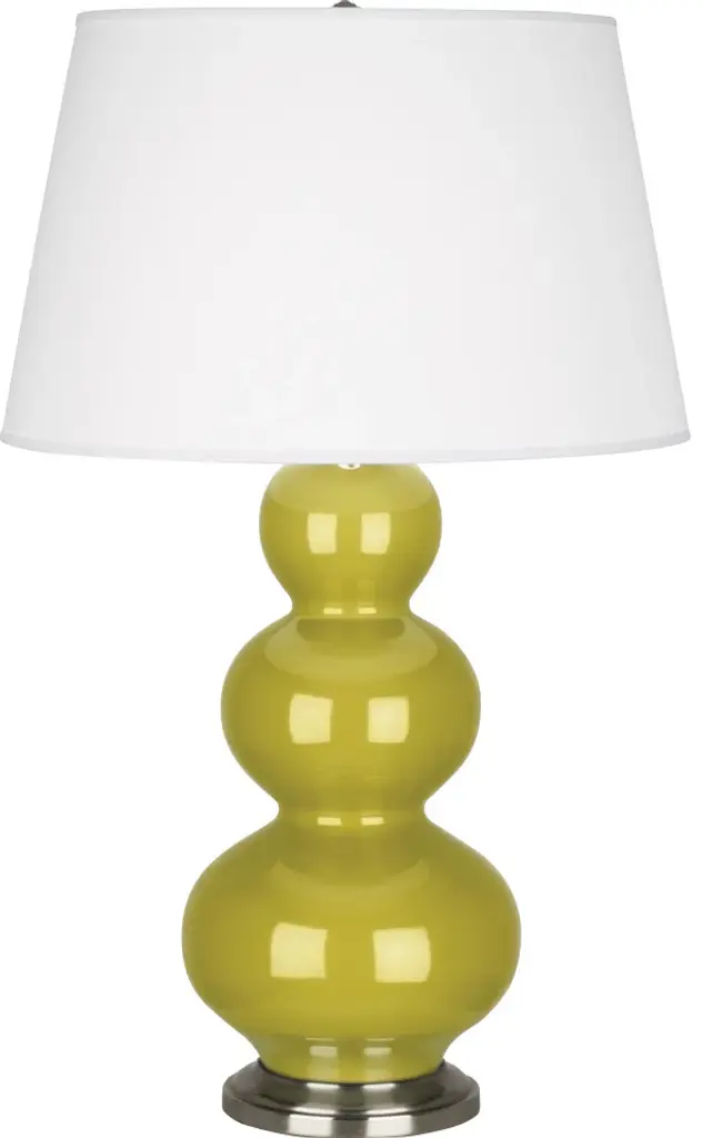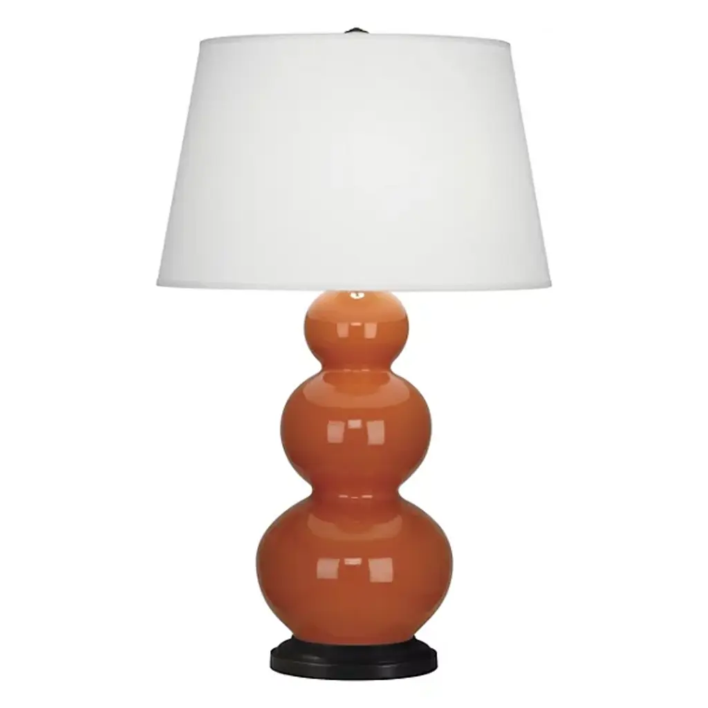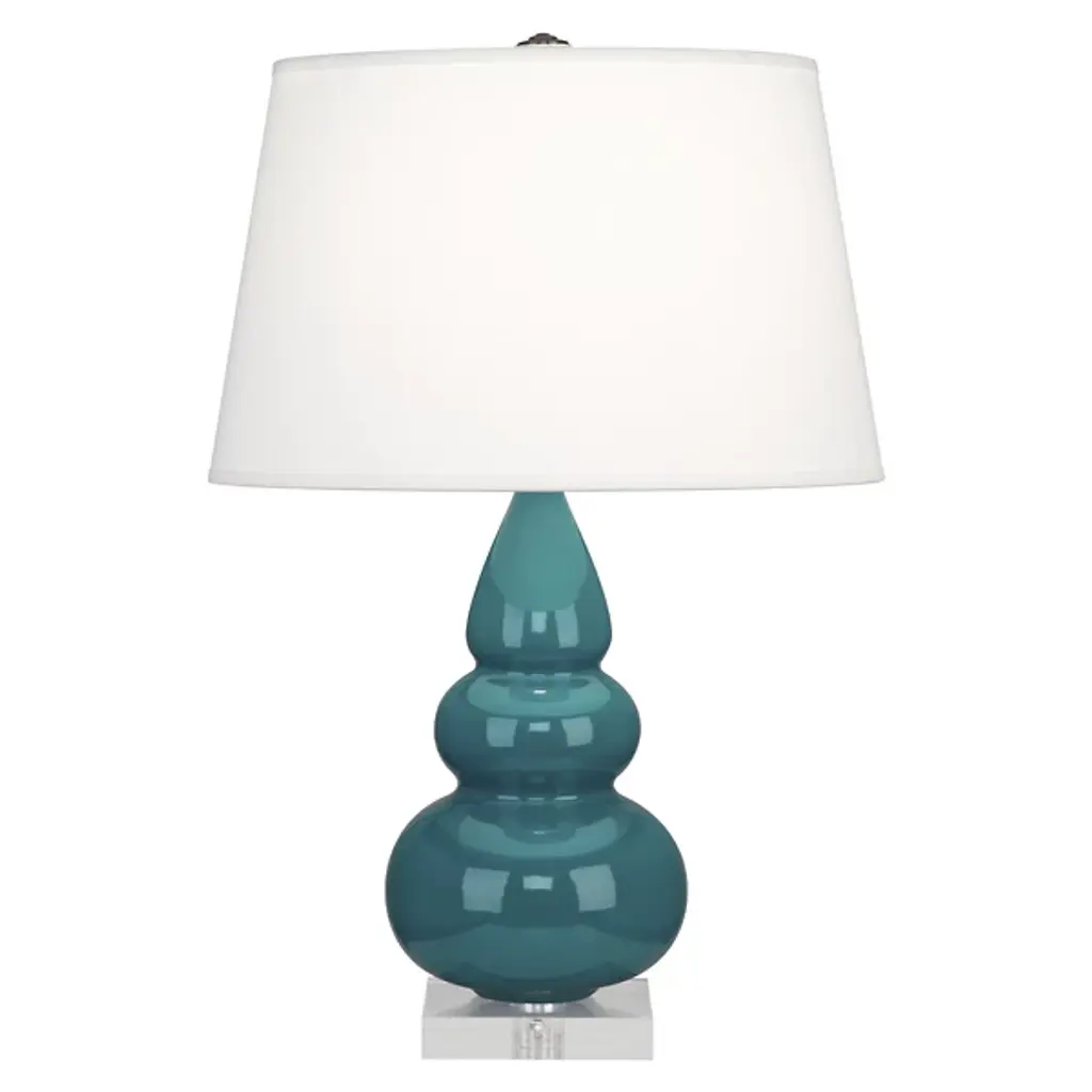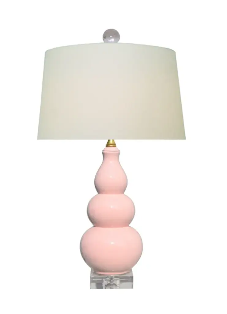 Clean and understated, this timeless, triple gourd lamp will elevate any room! Sitting on a crystal base, the sophisticated porcelain lamp adds a pop of color to any room.