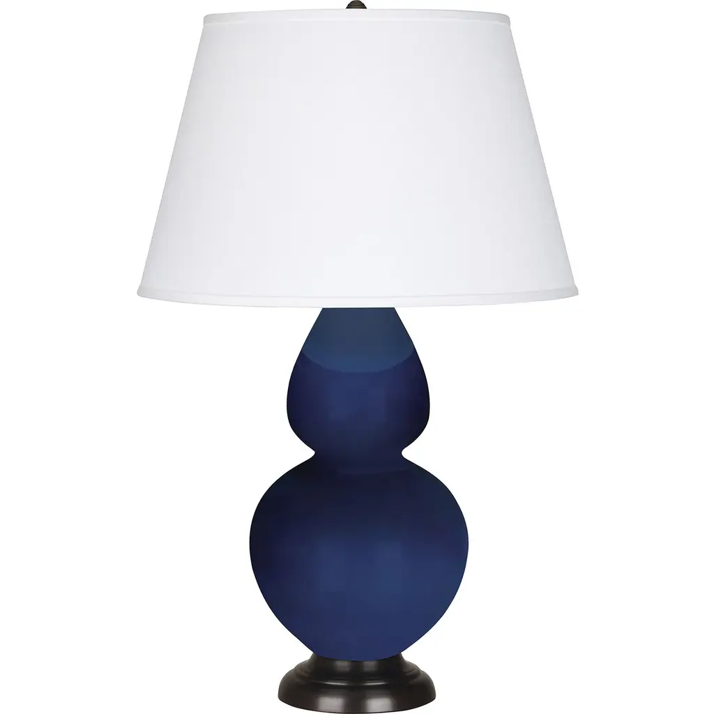 The Robert Abbey Triple Gourd Table Lamp has a beautifully bulbous form accentuated by glossy glazing. The rounded ceramic body is available in a myriad of glaze colors, all of which gleam in the light cast from the Pearl Dupioni fabric shade. The entire lamp appears to float above a table surface on a base of clear lucite.