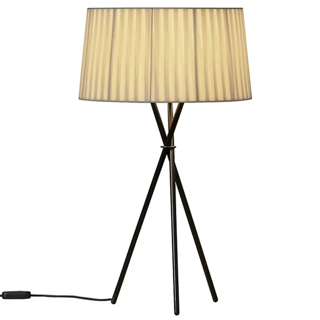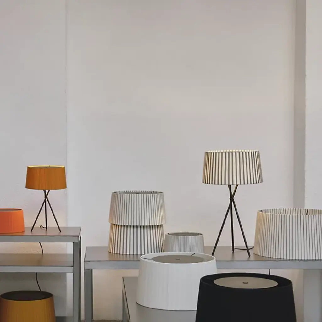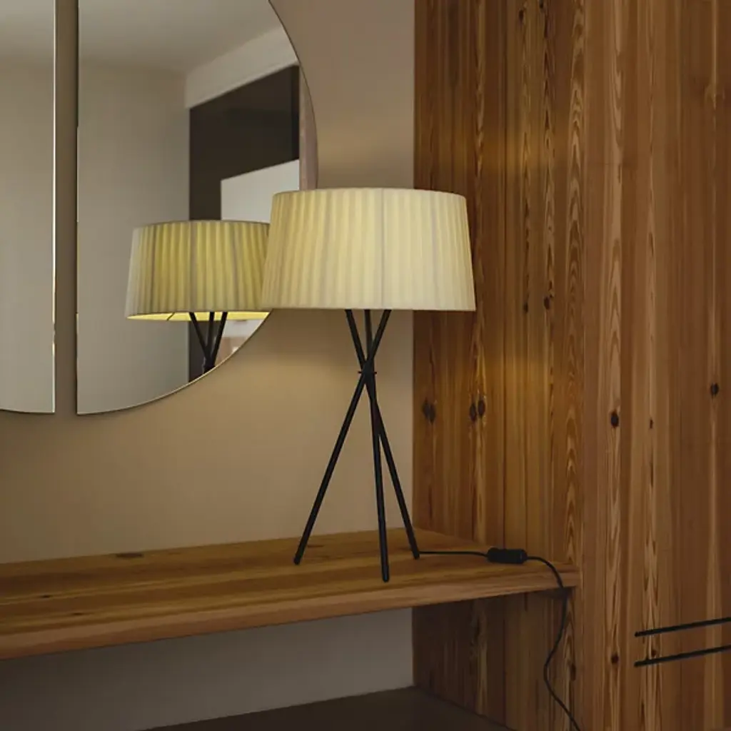 A sultry, long-legged beauty, the Santa & Cole Tripode G6 Table Lamp props a pleated pop of color atop three super slim 29.5" crossed metal tubes. Abetted by a Black top diffuser, Tripode channels the light downward, the warmth level controlled by the dimmer switch located on the power cord.