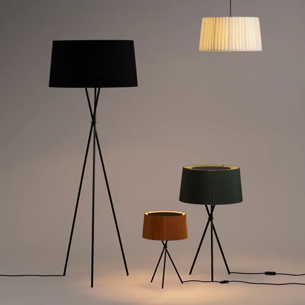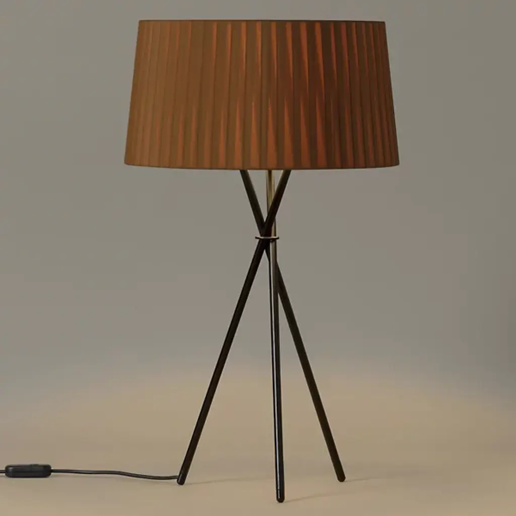 A sultry, long-legged beauty, the Santa & Cole Tripode G6 Table Lamp props a pleated pop of color atop three super slim 29.5" crossed metal tubes. Abetted by a Black top diffuser, Tripode channels the light downward, the warmth level controlled by the dimmer switch located on the power cord.