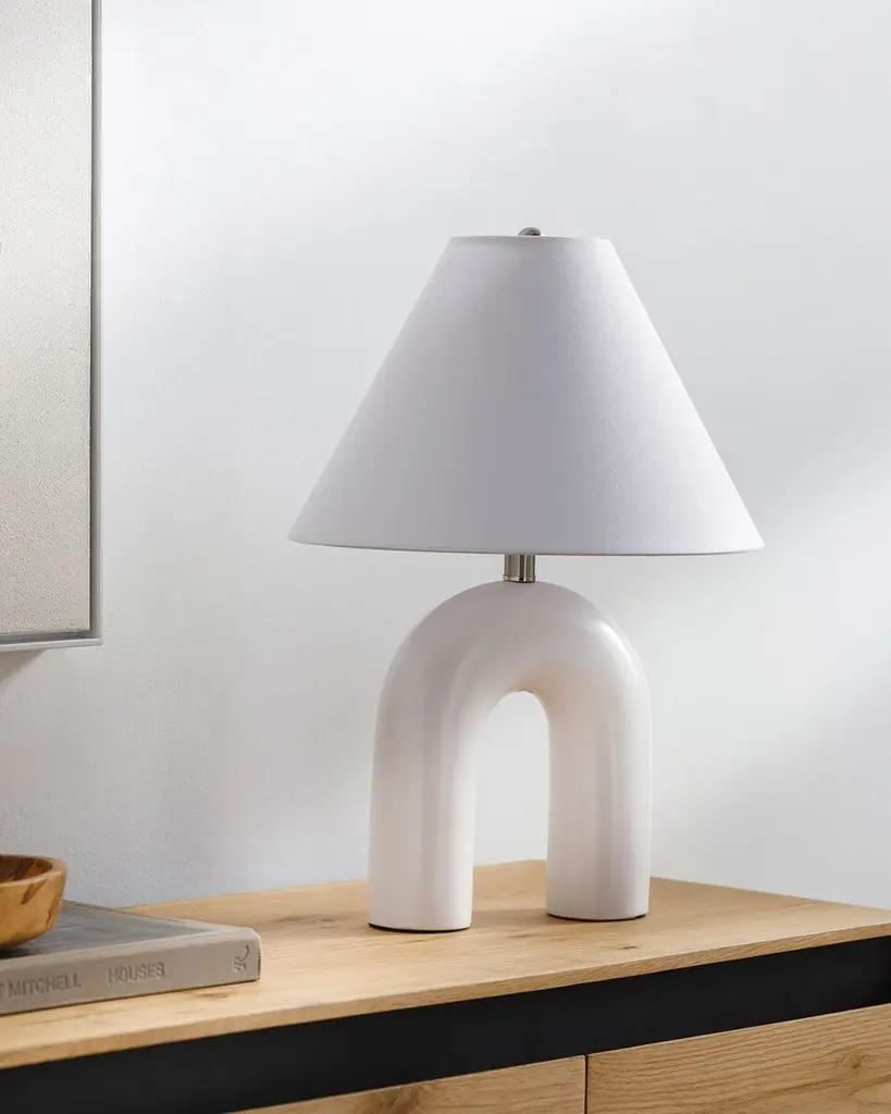 Illuminate your space with the Tripp Ceramic Table Lamp, a stunning piece that effortlessly merges functionality with style. This charming lamp is constructed from ceramic, featuring a linen shade on the outside and a metal inside for optimal light distribution, creating an inviting ambiance in any room. Topped with a sleek metal finial, this lamp adds an elegant touch to your decor. To keep it looking its best, simply wipe clean with a dry cloth. The Tripp Ceramic Table Lamp is more than just lighting - it's an essential part of your home aesthetics.