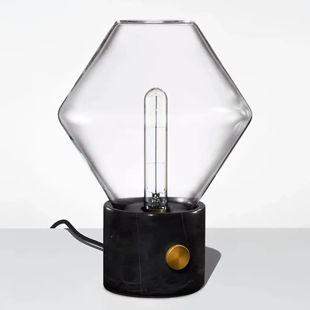 The Trove Table Lamp from Niche beautifully blends timeless elegance with modern design, handcrafted with care to create a true statement piece. Its striking, clean angles and pristine glass shade bring a refined presence to any room. A luxurious carved marble base—each with its own unique veining—adds character and sophistication. Finished with a satin brass dimmer knob, it lets it easily adjust the light, creating the perfect ambiance from soft and serene to bright and welcoming.