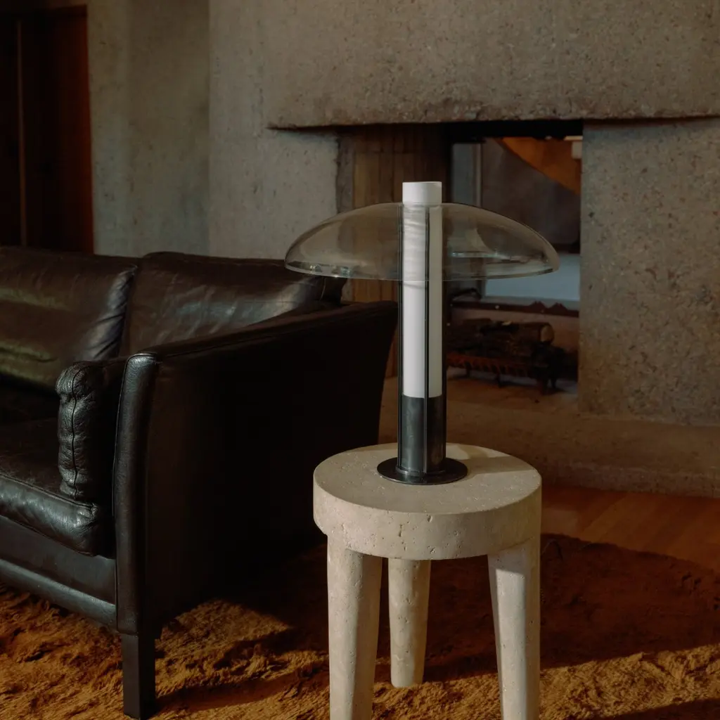 Gleaming layers of glass diffuse dimmable light from Troye’s central column, detailed with delicate metal poles that give a subtle nod to modernist styles of the past. A gently domed outer shade, in a choice of metal or clear glass finishes, further reflects and disperses the dimmable, lustrous warmth from this petite design.