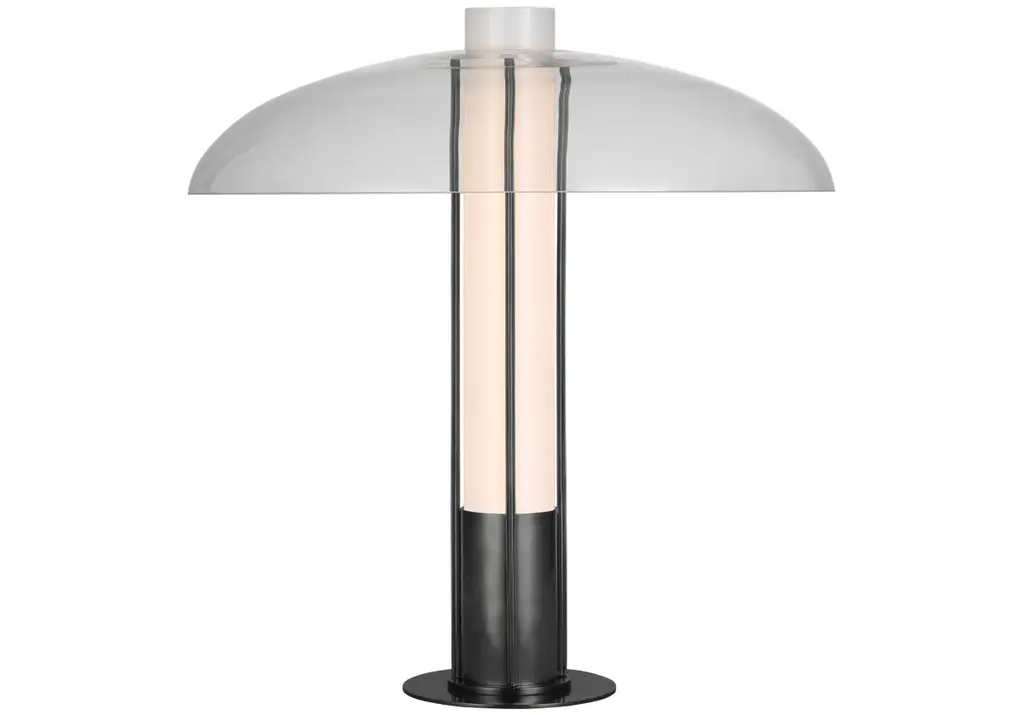 Sleek and polished, the Troye boasts a shapely metal form accentuated by a striking shade. Its tasteful design lends a sophisticated elegance, styling beautifully on consoles, sideboards, side tables, and dressers.