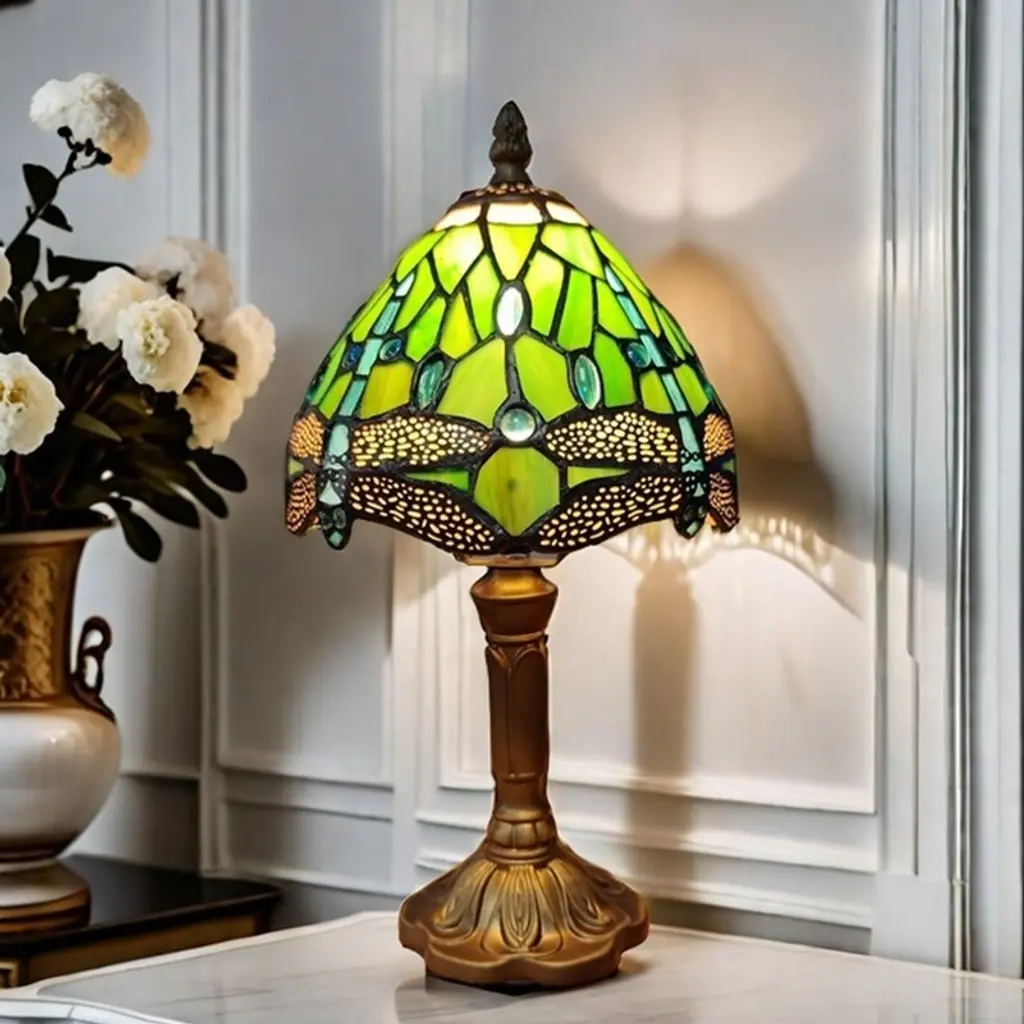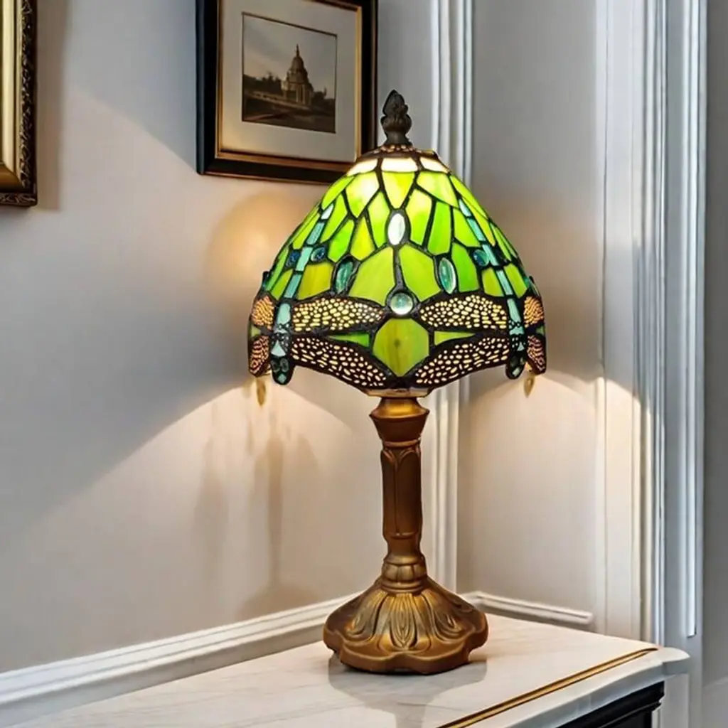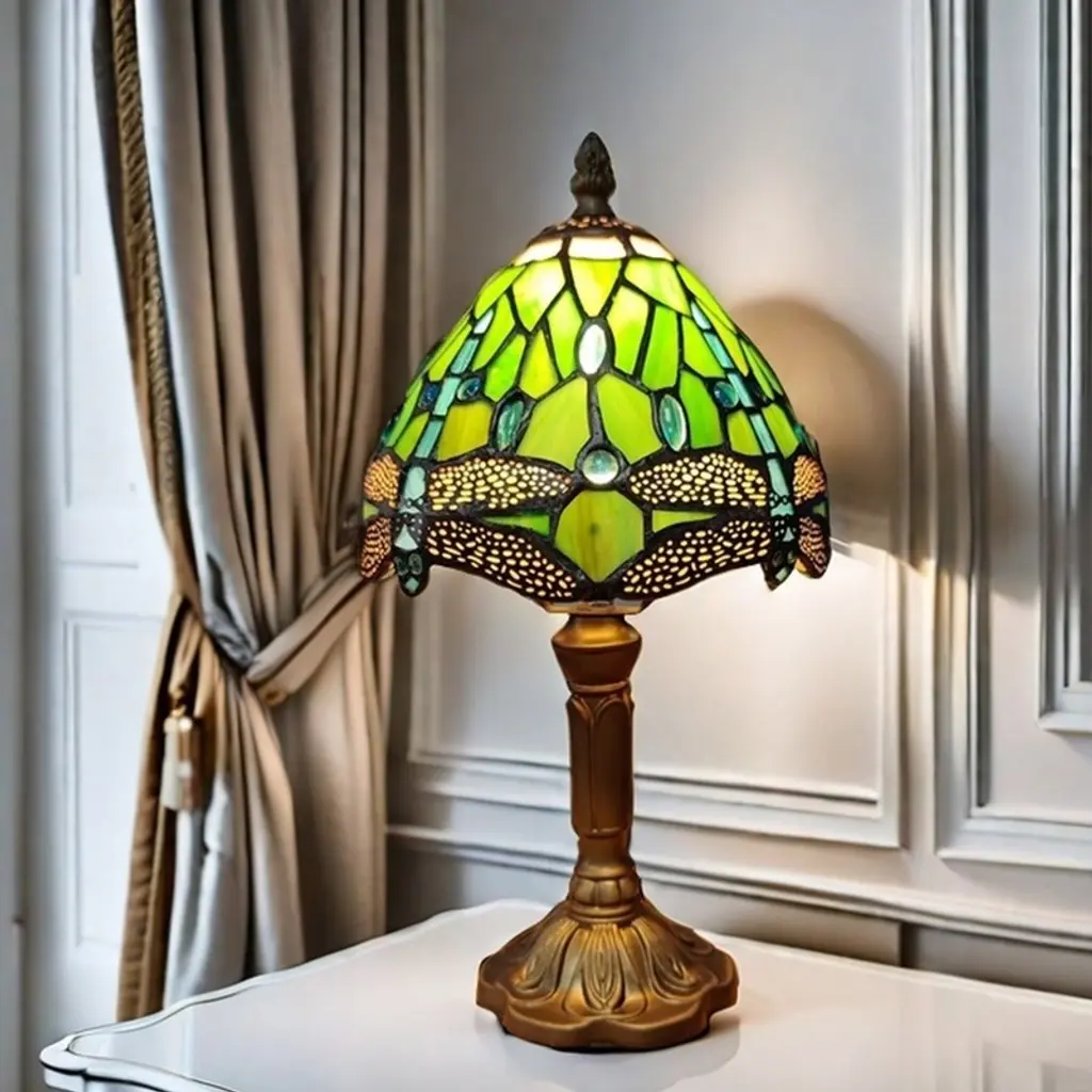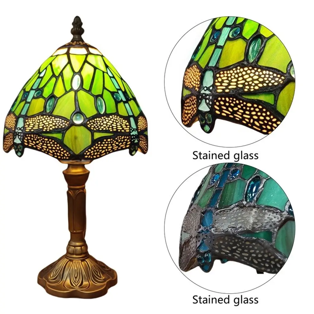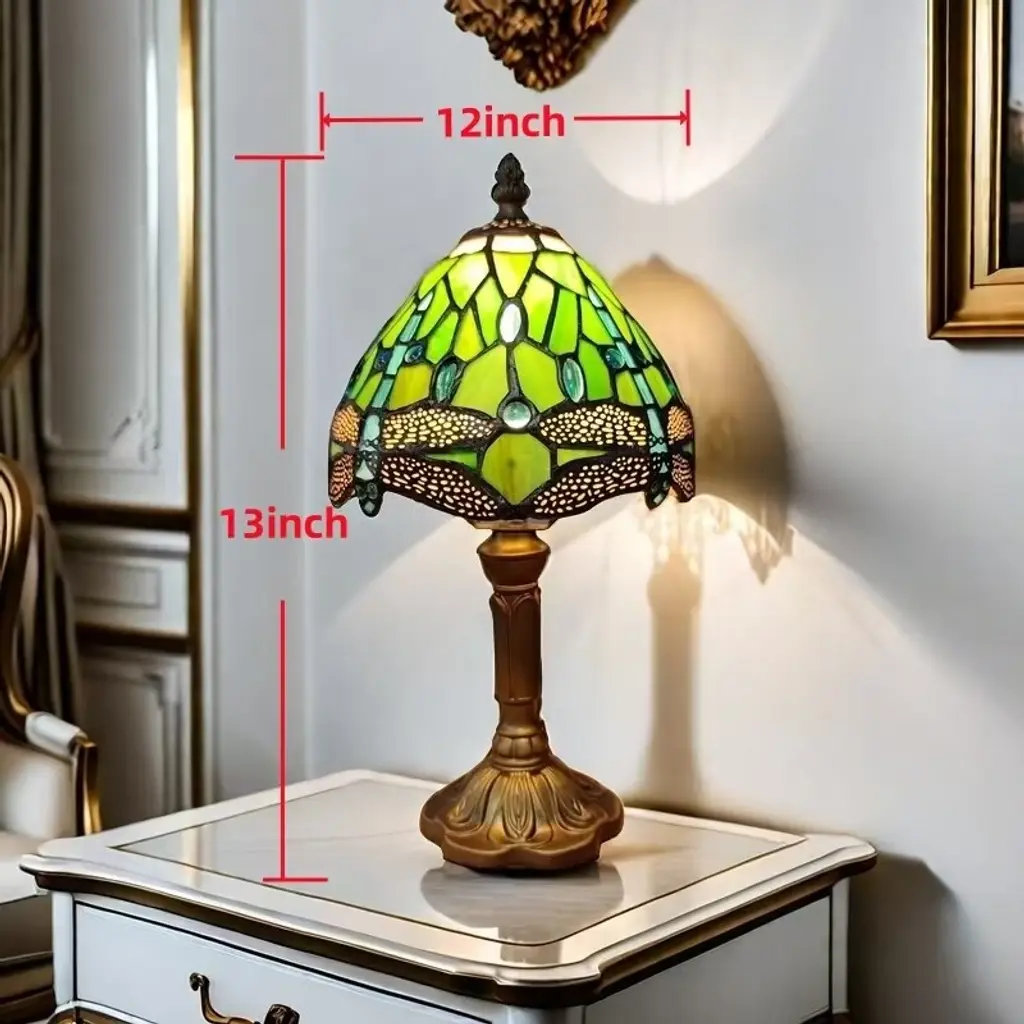 Tubcraft 13''h Tiffany Style Table Lamp, Stained Glass Table Lamp - 8'' X 8'' X 13'' - Green