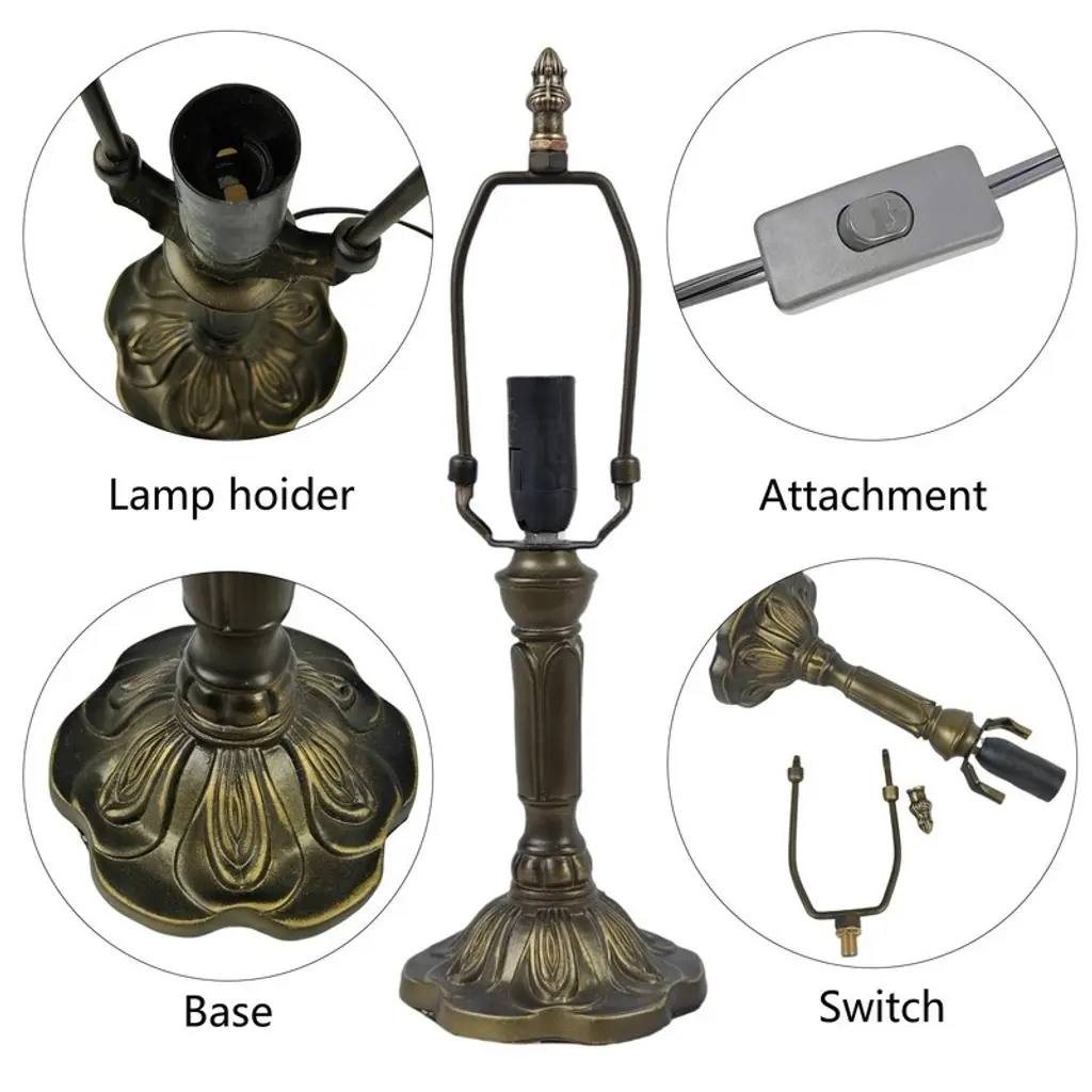 The 13'' Height Tiffany Style Table Lamp features an exquisite design that beautifully combines art and function. With its intricate stained glass shade showcasing vibrant colors and unique patterns, this lamp adds a touch of elegance to any space. The sturdy aluminum alloy base provides stability while complementing the overall aesthetic of the lamp. Ideal for living rooms, bedrooms, or offices, this piece serves as both a source of light and a stunning decorative accent. Please attantion, bulbs are not included, allowing you to choose the perfect lighting for your needs.