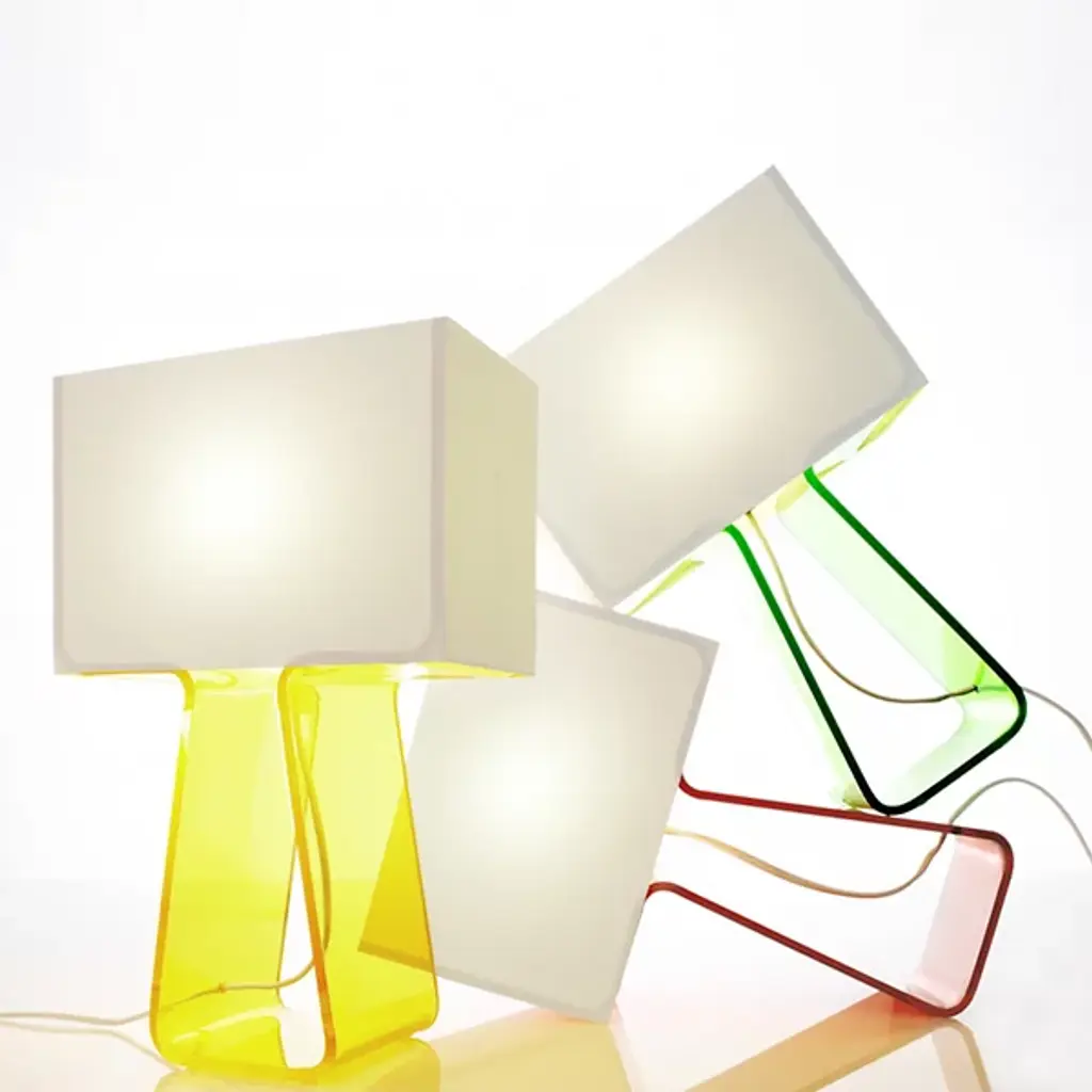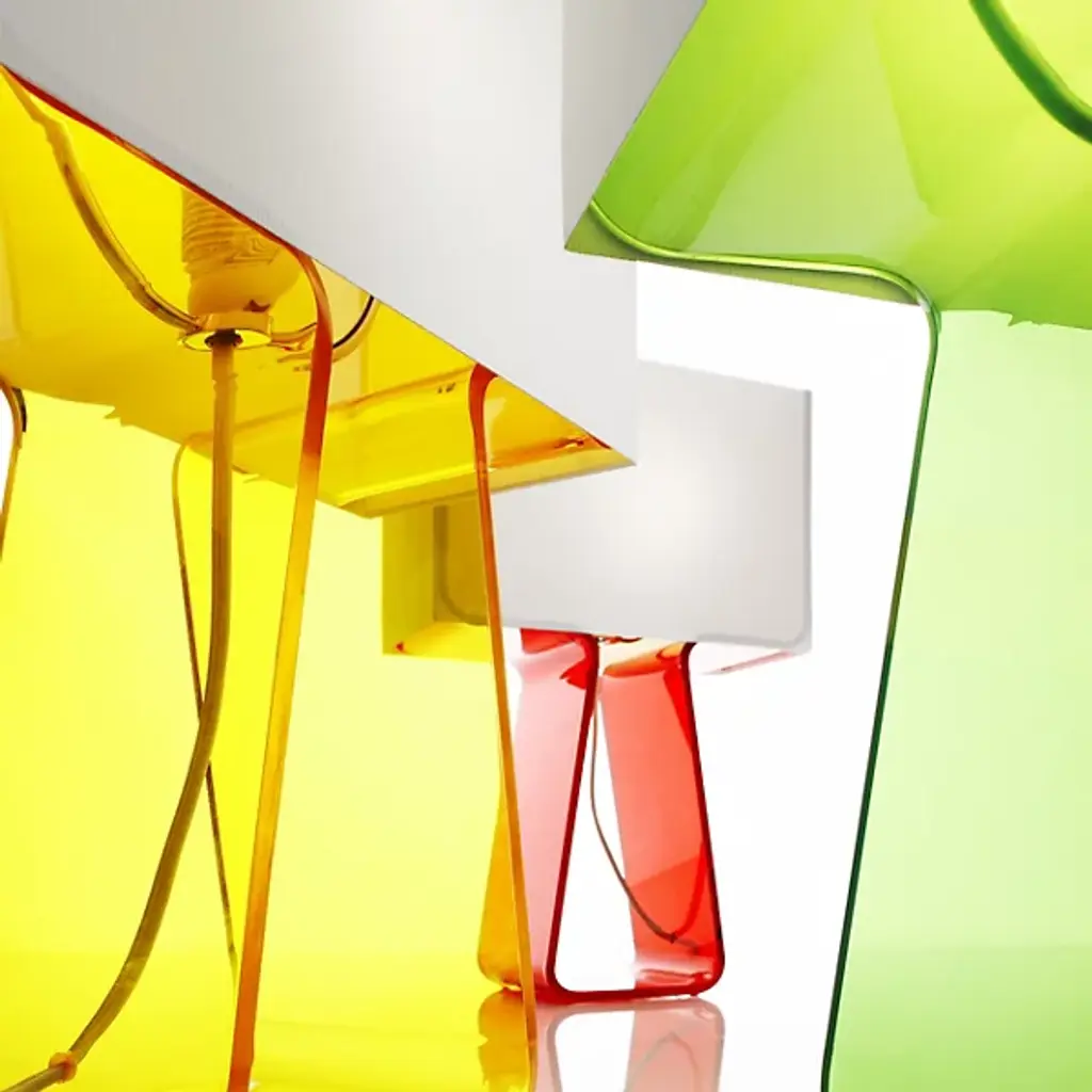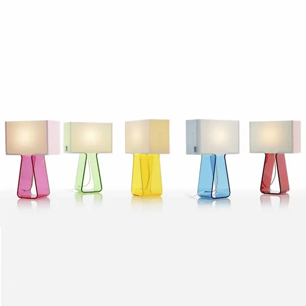 Designed by Peter Stathis, the Tube Top Colors Table Lamp steers away from the conventional with its unique construction and modern form. Juxtaposing a clean White mesh fabric shade with a candy-hued array of acrylic bases, Tube Top is stylish, contemporary and just plain fun. A minimalist - and colorful - statement for the modern home.