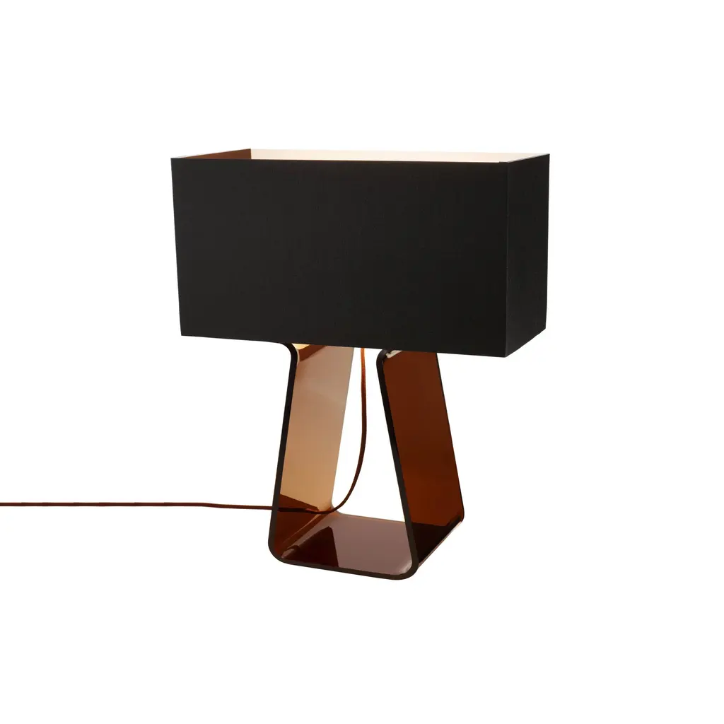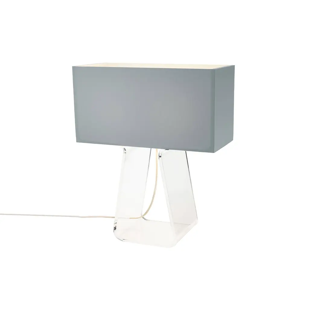 Familiarity breeds inspiration. With his Tube Top Collection for San Francisco-based Pablo, designer Peter Stathis noodles around with the customary shape of a household classic. The table lamp's linear, transparent acrylic base extends to become the framework for this table lamp. Within the clear stand, the striking stretched-mesh squared-off shade appears to float freely, gently tethered by a fabric cord. In the colored acrylic, this minimalist twist takes on a pop spin.