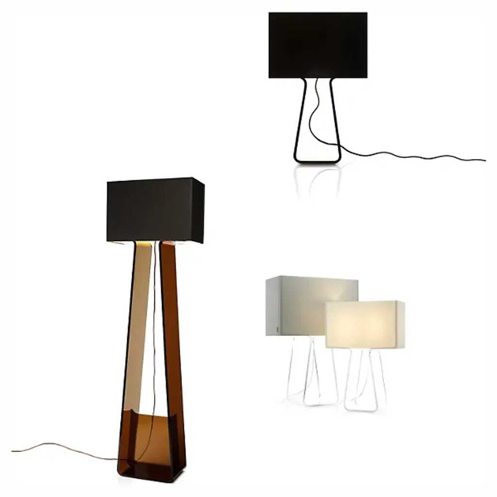 Designed for fun and functionality. The Tube Top Table Lamp by Pablo Designs is part of a contemporary line of lamps that make bold style statements. Its translucent base gives the illusion that the lamp is floating atop tables, shelves, and consoles and the textile shade balances the look. This lamp also features a full-range dimmer and a coordinating power cord to maintain its modern aesthetic.