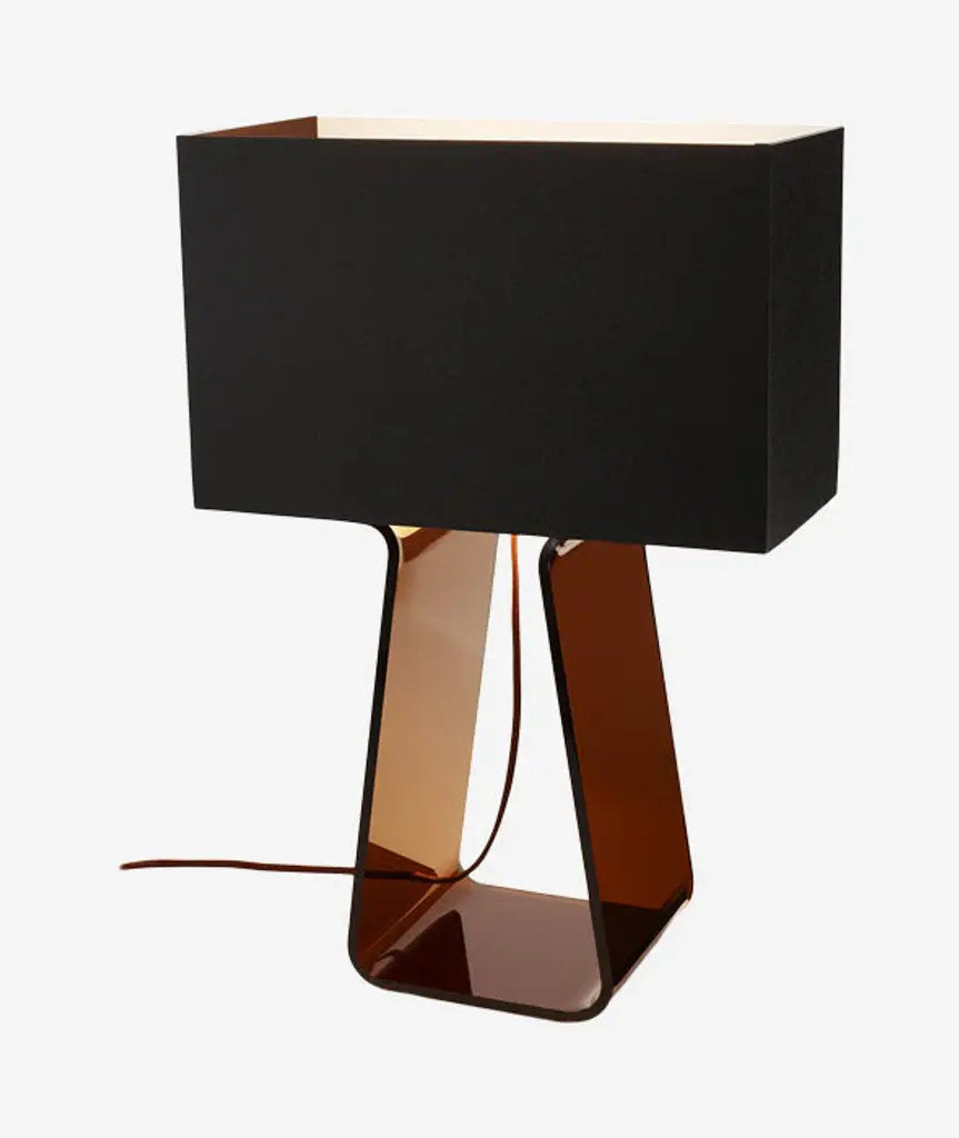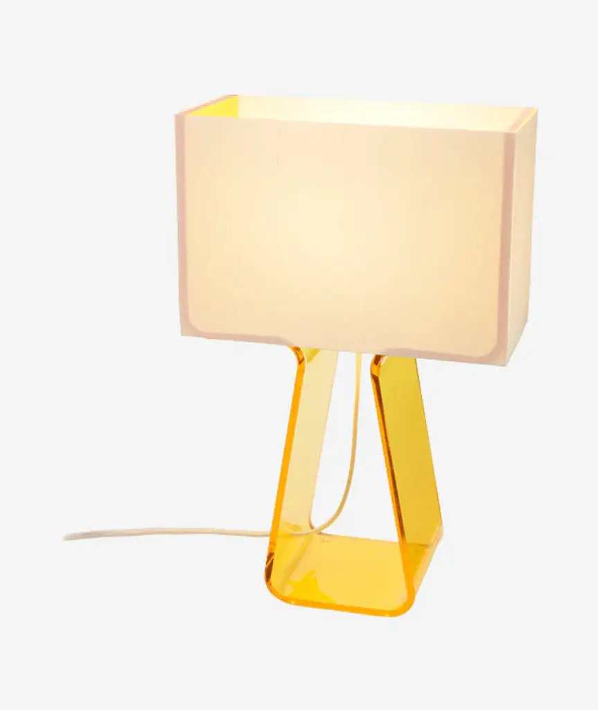 A minimalist statement in form and proportion, Tube Top combines a transparent formed acrylic base to support its elegant mesh fabric shade in tension, steering away from conventional modes of construction. Its lightweight shade appears to float freely, gently tethered by its fabric cord. Tube Top is available in multiple table, floor and pendant models.