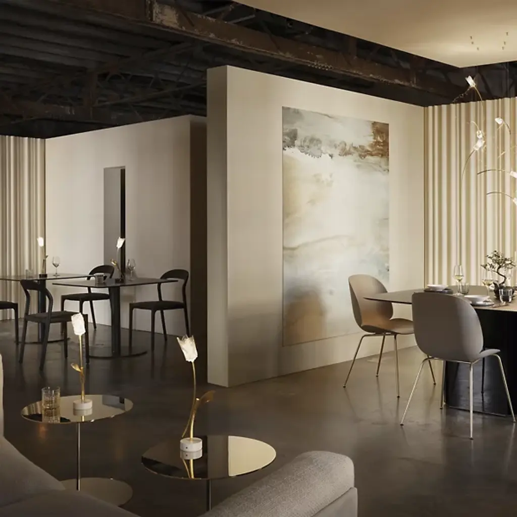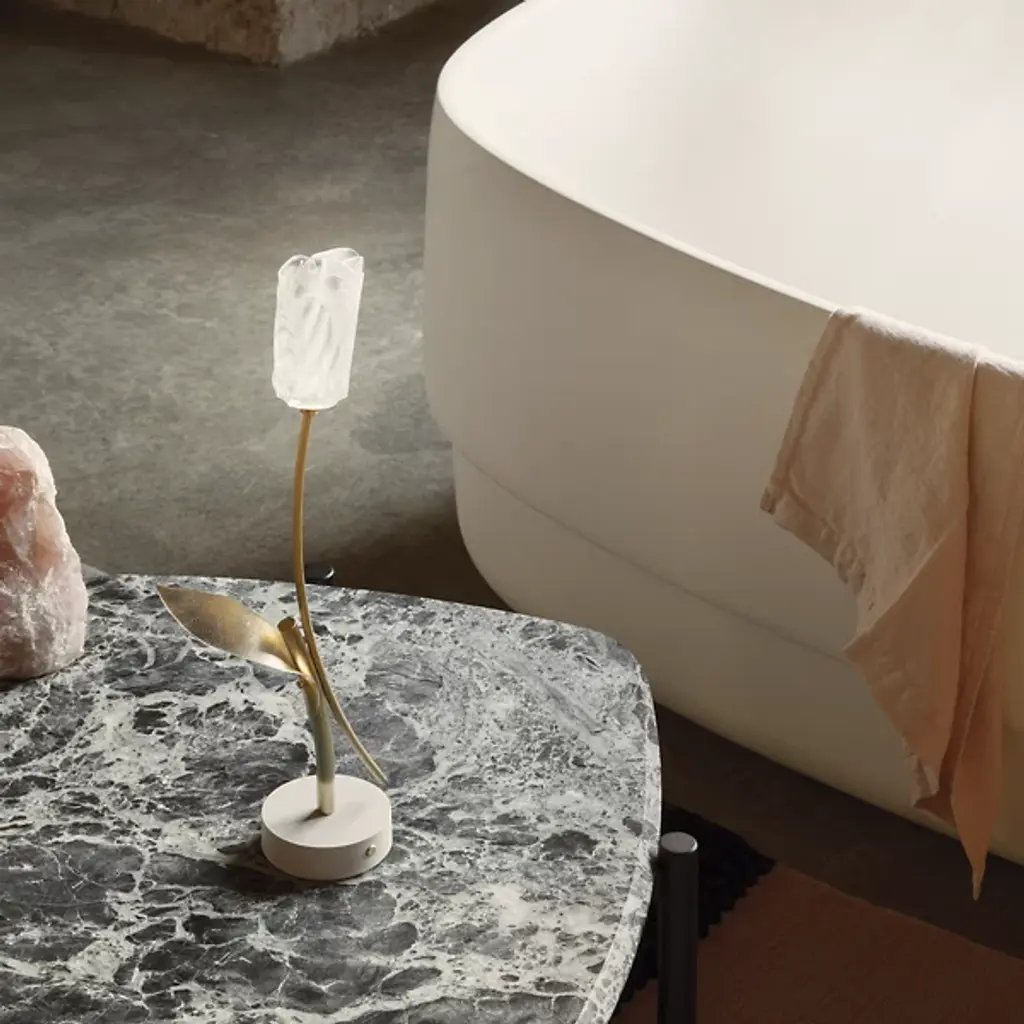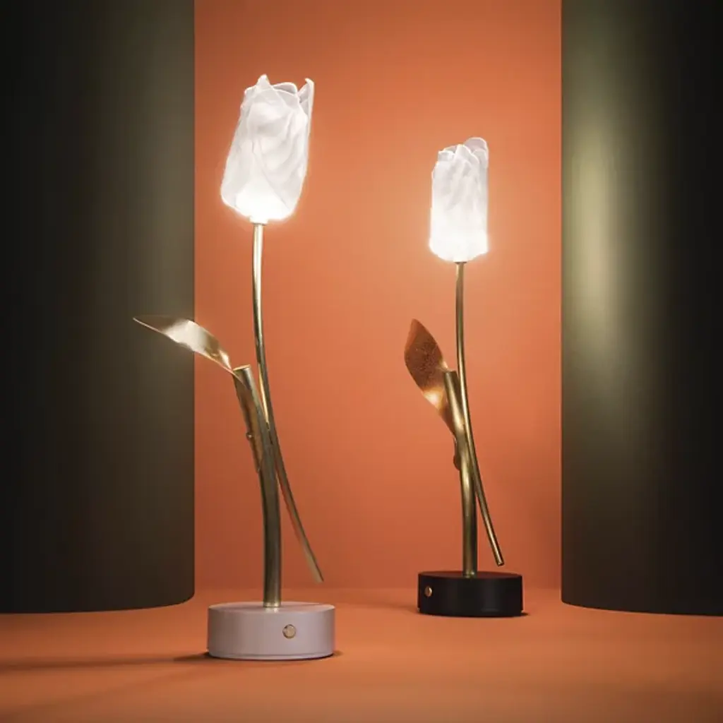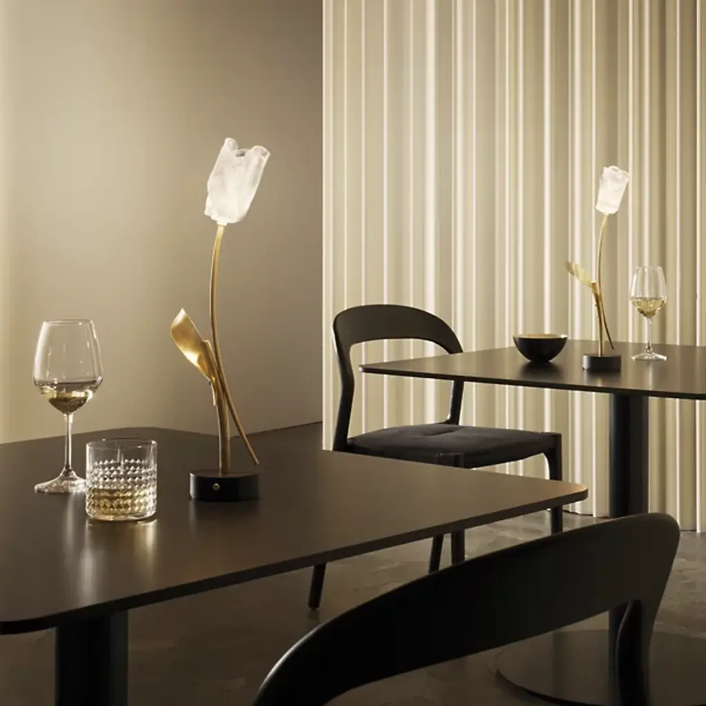 Shaped like its floral namesake, the Tulip Battery LED Table Lamp from Slamp is a beautiful embodiment of nature-themed design. Thoughtfully handcrafted, designer, Marc Sadler forms a lamp that captures the essence of a tulip’s grace. The table lamp works in tandem with a separately sold rechargeable lithium-ion battery. Made from durable aluminum, this beautiful piece showcases quality and innovation. Its shade is made of anodized Lentiflex. Embrace the versatility of LED lighting with the inline rotary dimmer