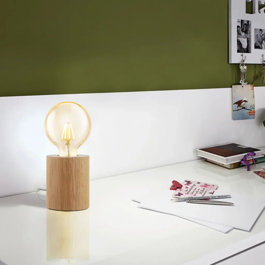 Turialdo Open Bulb Table Lamp, Natural Wood Finish