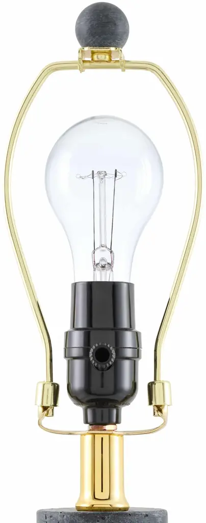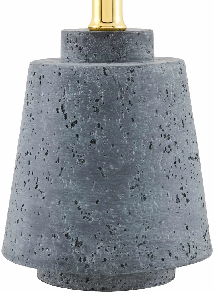 Collection: Turukhansk Colors: Blue, Metallic - Brass, Translucent Material: Body: Resin / Shade (Outside): Linen, Polyester / Shade (Inside): Polyester / Finial: Iron Styles: Traditional Made In: Cambodia Lighting Type: Accent Table Lighting Shade Material: Linen, Polyester Shade Color: White Cord Length: 6' Switch Type: Rotary Number of Bulbs: 1 Socket Type: E-26 Bulb Wattage: 60W