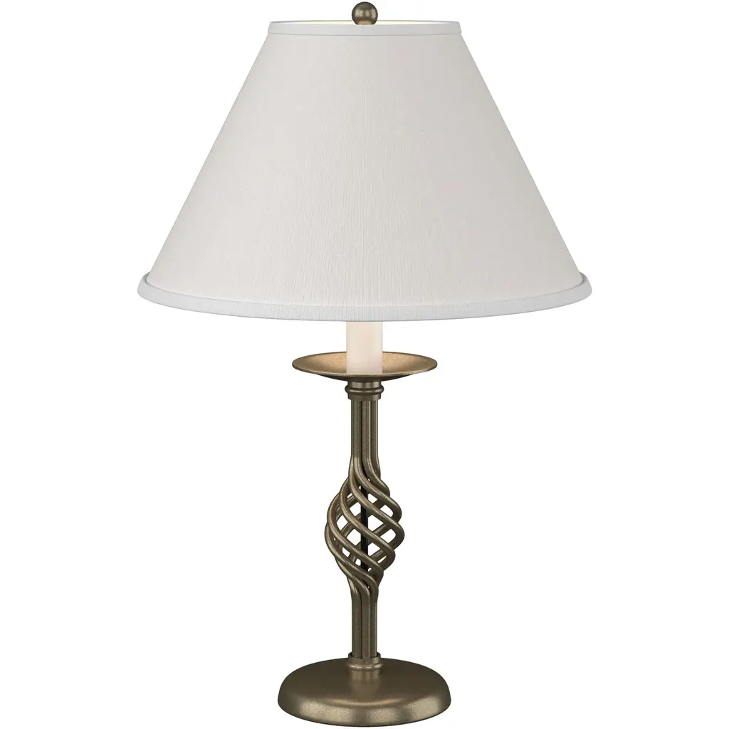 A traditional design with a literal twist, the modern blacksmiths here at our forge have crafted the twist basket design of yesteryear to adorn today's rooms. This table lamp displays forging at its finest.
