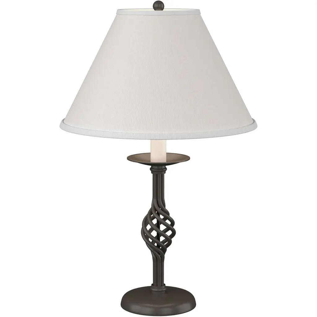 A traditional design with a literal twist, the modern blacksmiths here at our forge have crafted the twist basket design of yesteryear to adorn today's rooms. This table lamp displays forging at its finest.