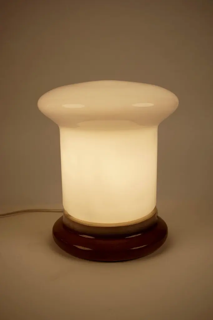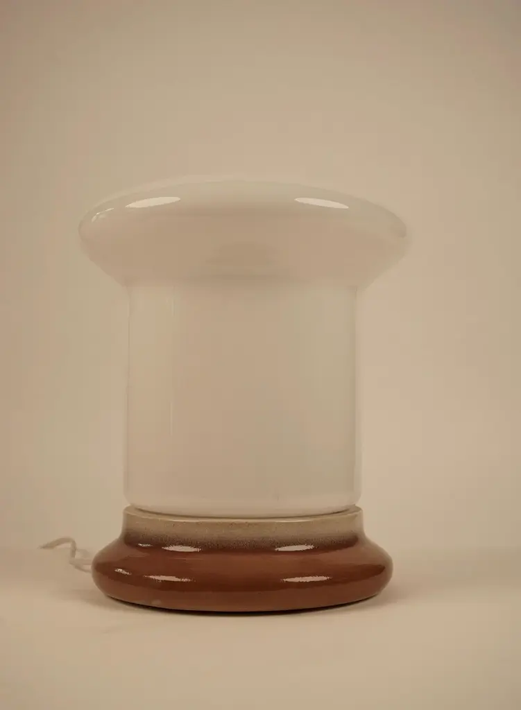 Two 1960s Table Lamps With Opaline Glass And Ceramic Base