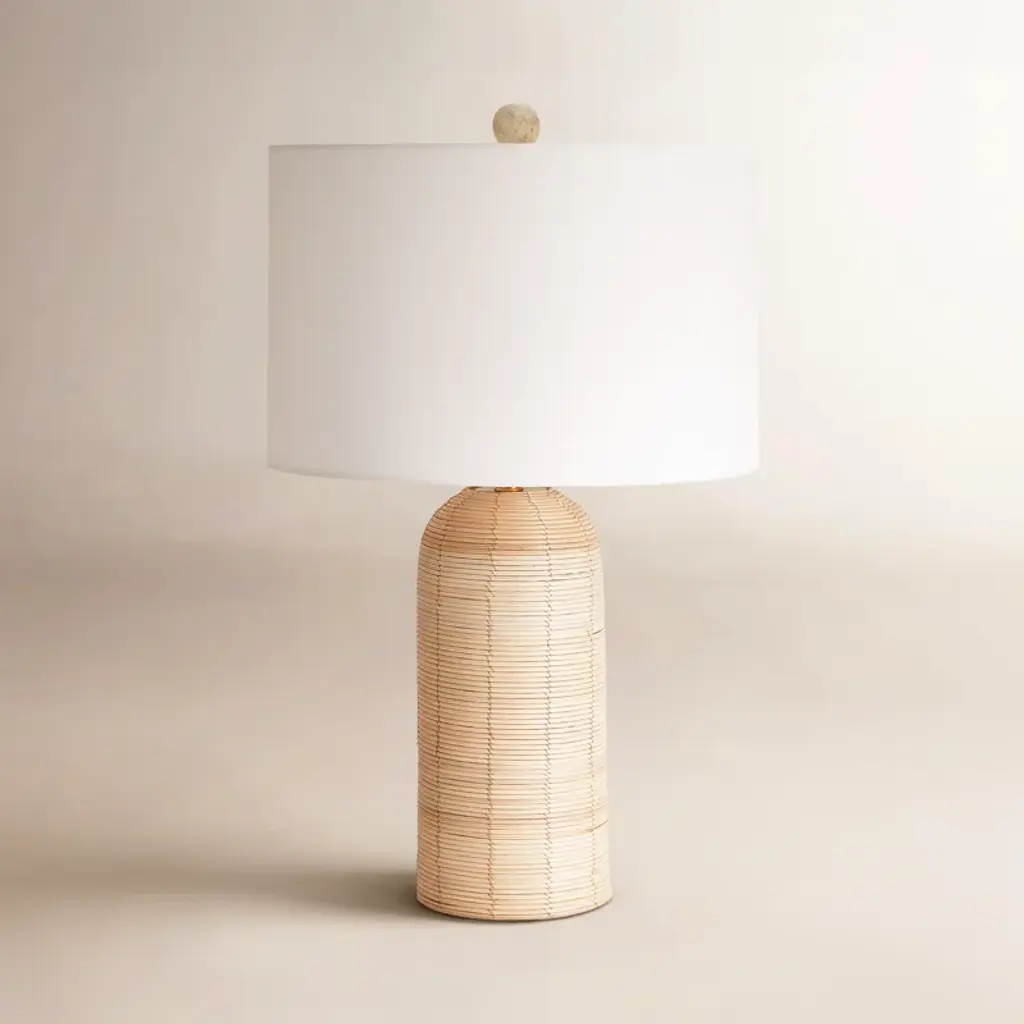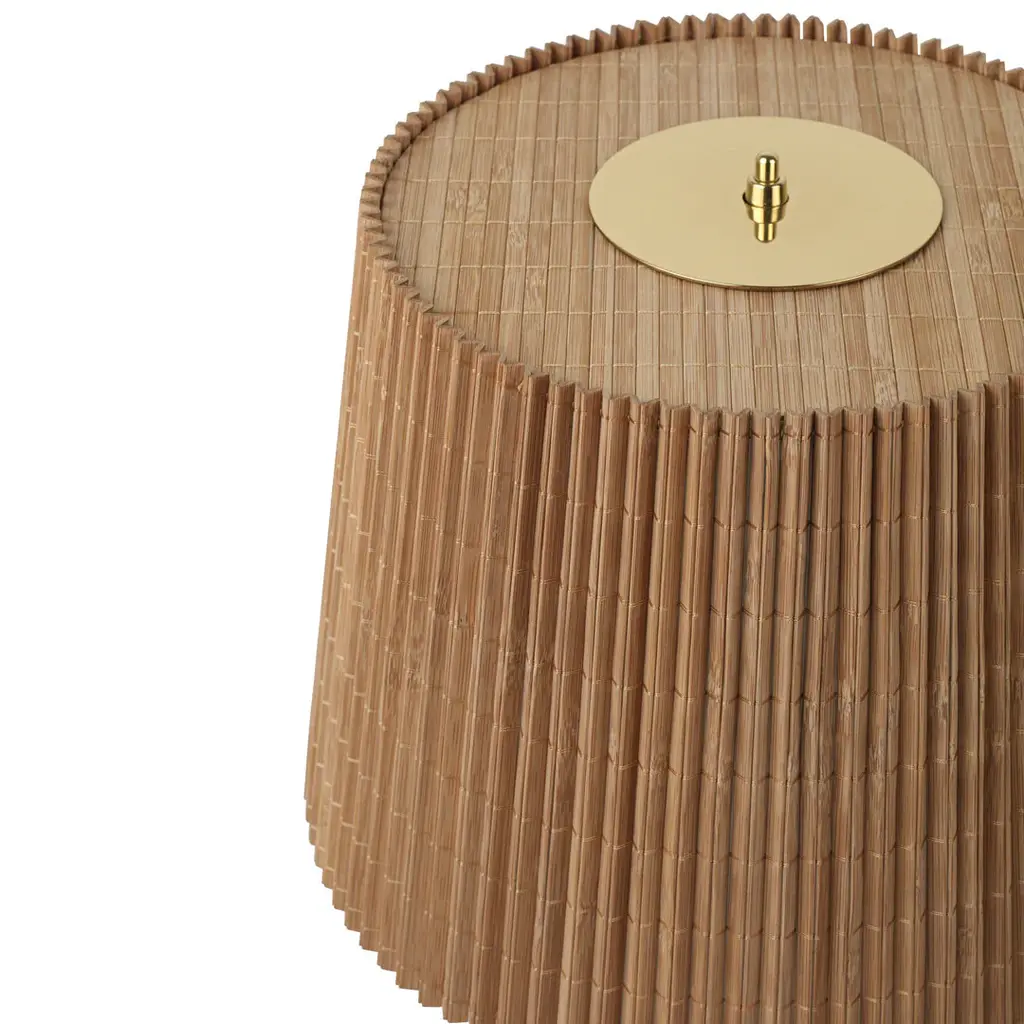 First produced around 1950, the 9205 Table Lamp is a classic, almost archetypal, table lamp with an unmistakable Tynell aesthetic. Elegant and slender, the lampâ€s apparently simple form conceals an extraordinary degree of craftsmanship and highly skilled hand-making. A beautifully detailed fusion of crafted precision, classic proportions, and natural material, the 9205 Table Lamp exemplifies the attention to decorative detail and the delight in fine craftsmanship that Tynell brought to even the most simple-seeming forms. The bamboo is made from a series of slats first sewn together by hand to form a pleated mat before being connected to the liner and frame – a contemporary update to the ryegrass cane used in Taitoâ€s original model. Activated by a switch on top of the stem, the light in both versions presents a downward light and a warm, 360 º glow.