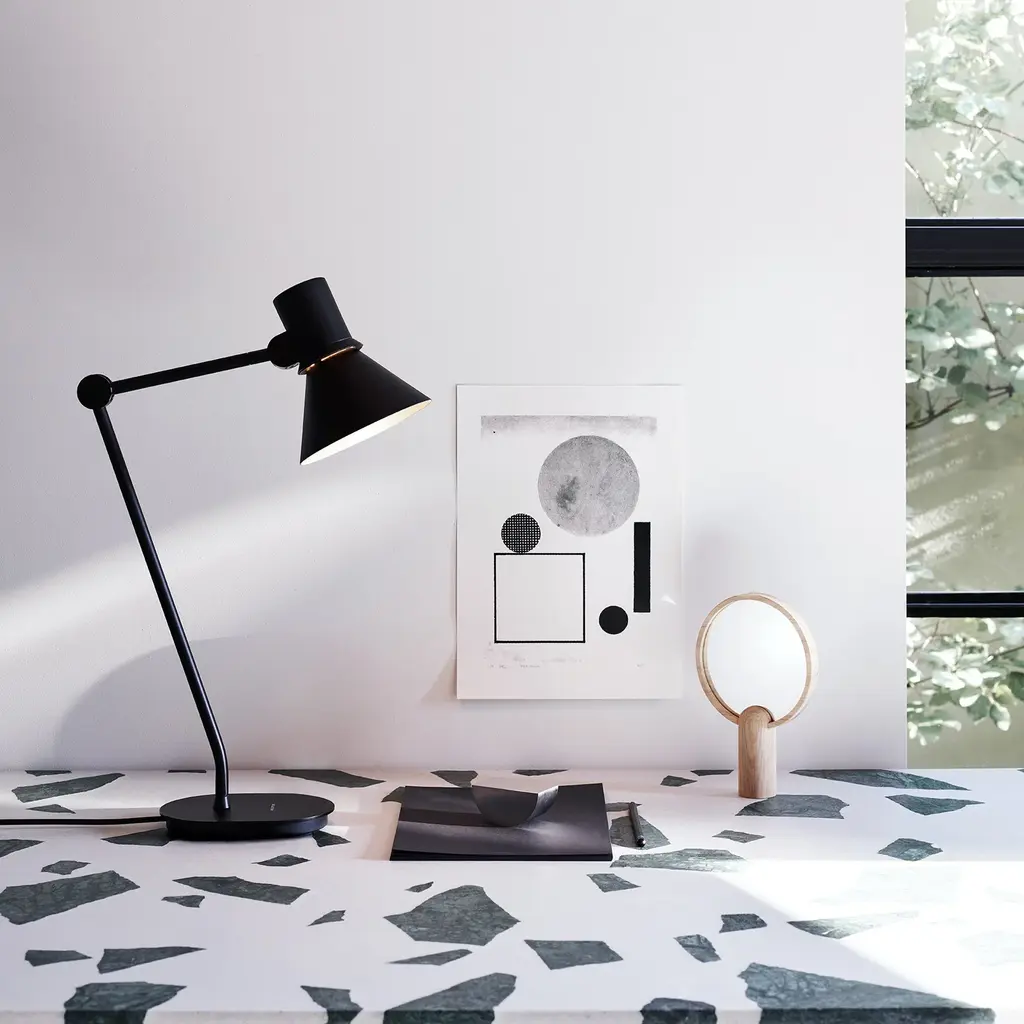 Type 80 riffs on the classic Anglepoise conical shade, giving the desk lamp a striking, graphic profile and featuring an added “halo” of ambient light. Designer Sir Kenneth Grange innovation is especially useful to augment illumination in low-light environs. Precision-engineered in the legacy British company’s tradition, the lamp’s refinements include spring-held joint mechanisms and cables that are discreetly routed through the arms.