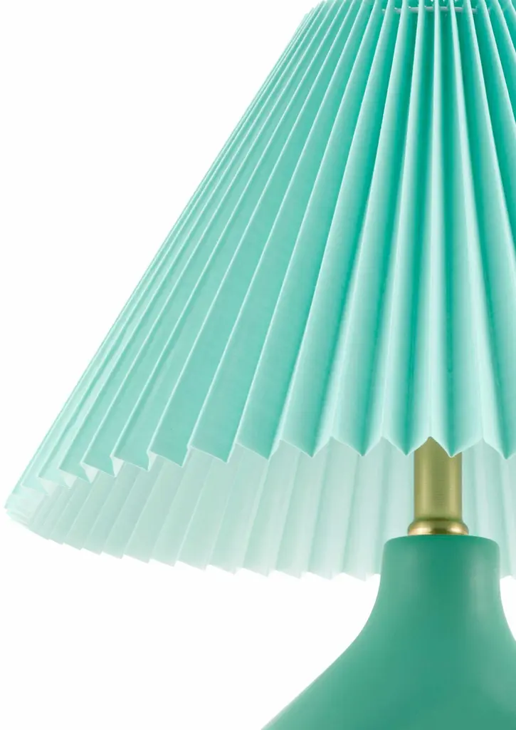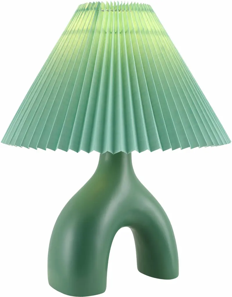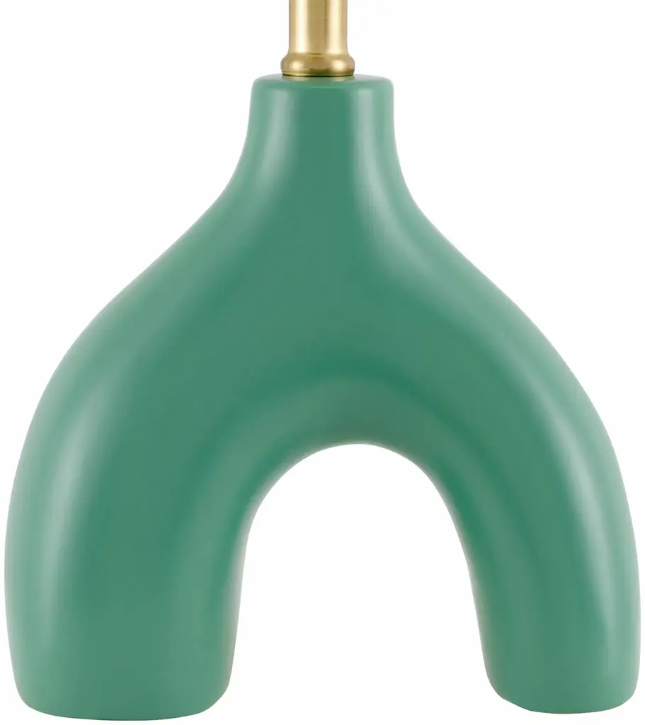 Collection: Uettingen Colors: Green, Translucent Material: Body: Ceramic / Shade (Outside): Linen, Linen / Shade (Inside): Linen, Plastic Styles: Contemporary Made In: China Lighting Type: Accent Table Lighting Shade Material: Linen, Plastic Shade Color: Dark Green, Green Cord Length: 6' Switch Type: 3-Way Number of Bulbs: 1 Socket Type: E-26 Bulb Wattage: 100W