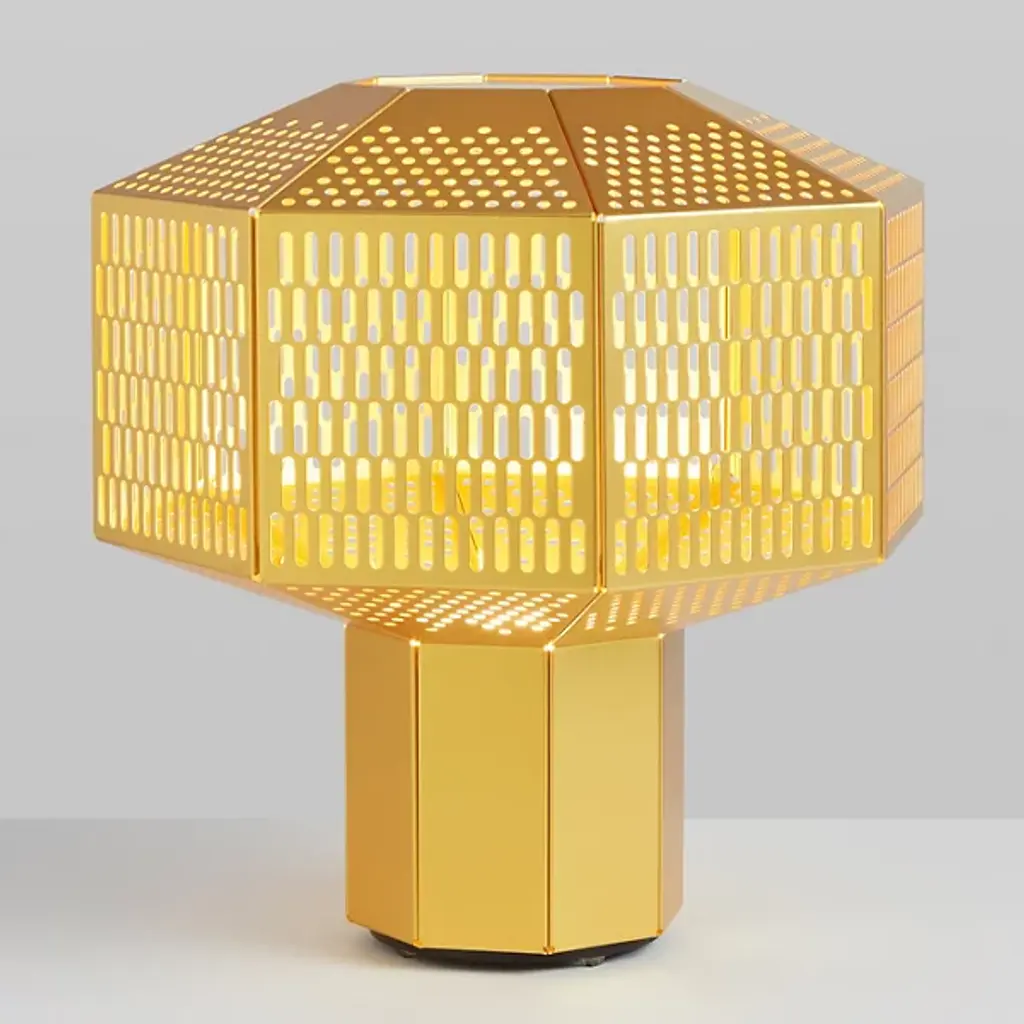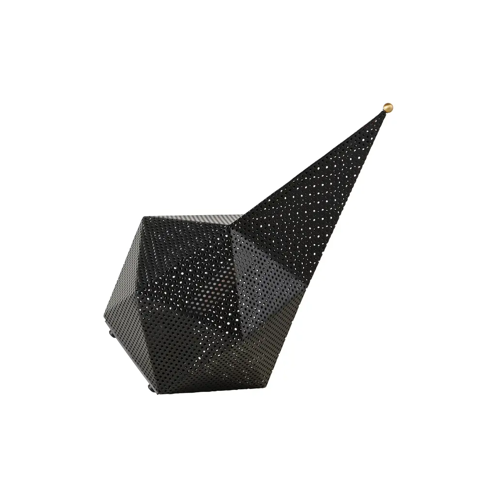 The Ula Copper Table lamp is made up of pentagon-shaped sides, reminiscent of Marrakech architecture style. Copper table lamps are handcrafted by master artisans in Morocco. Each piece has a hammered copper shade that is hand etched. This accent lighting is set on top of a sturdy walnut base. Place the table lamp on a desk or on a bedside table in a bedroom or guest room. Choose to match the metal finish with closet or drawer hardware to tie together and complete a contemporary look.