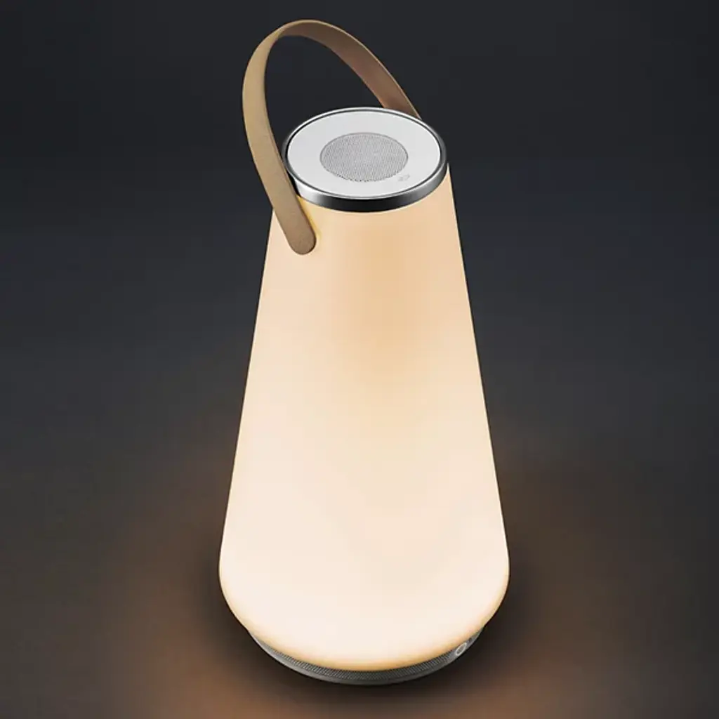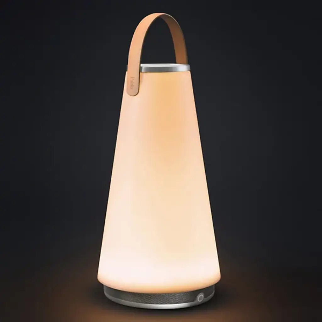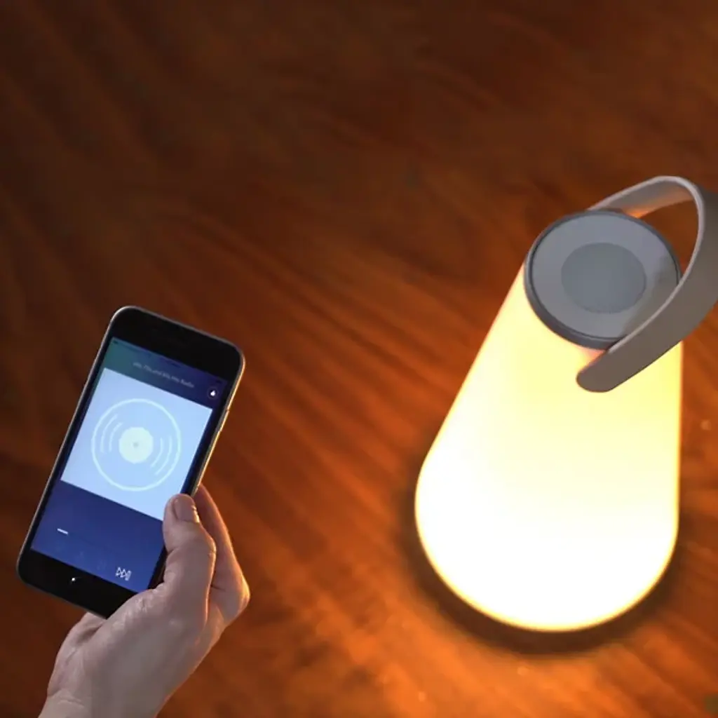 Elevate and enrich your environment with this harmonious design. The Uma Sound LED Table Lamp by Pablo Designs was created by Carmine Deganello and Pablo Pardo. This duo blends their expertise as architectural and industrial designers to create a unique, portable lamp that uses materials in an unexpected way to cultivate a magical relationship between people and the objects in their lives. A modern interpretation of a warm and inviting lantern, this effortless and intuitive piece provides rich quality sound with available Bluetooth technology and dims beautifully to match the mood wherever you may wander. Adding a magical touch to any adventure, this glowing light source has a durable and elegant form that seamlessly integrates into today’s world.