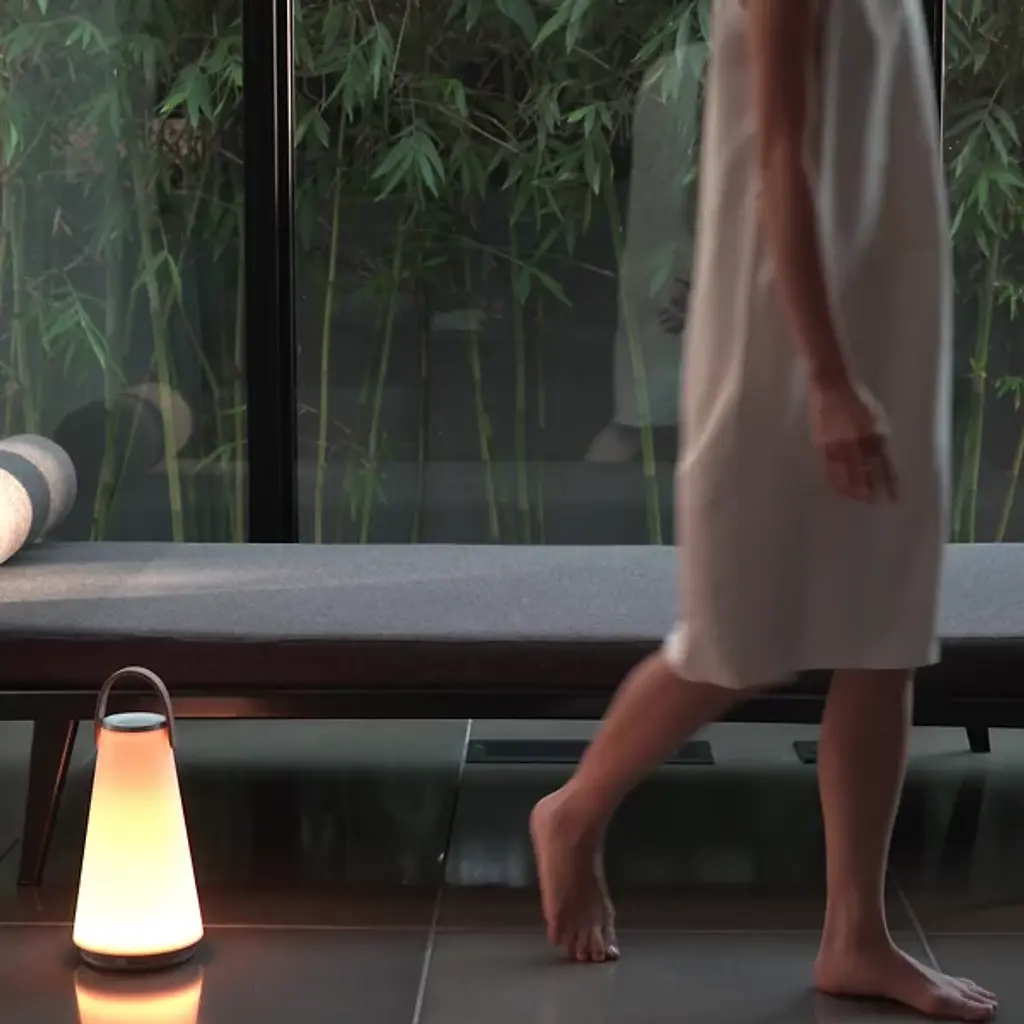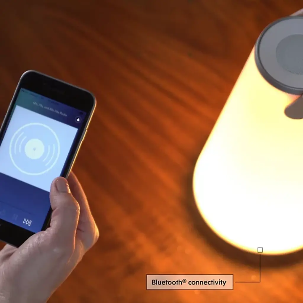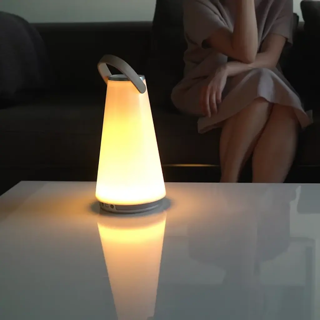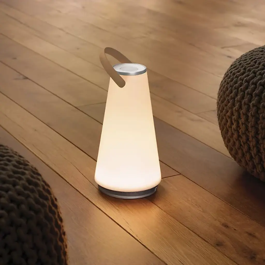 Elevate and enrich your environment with this harmonious design. The Uma Sound LED Table Lamp by Pablo Designs was created by Carmine Deganello and Pablo Pardo. This duo blends their expertise as architectural and industrial designers to create a unique, portable lamp that uses materials in an unexpected way to cultivate a magical relationship between people and the objects in their lives. A modern interpretation of a warm and inviting lantern, this effortless and intuitive piece provides rich quality sound with available Bluetooth technology and dims beautifully to match the mood wherever you may wander. Adding a magical touch to any adventure, this glowing light source has a durable and elegant form that seamlessly integrates into today’s world.